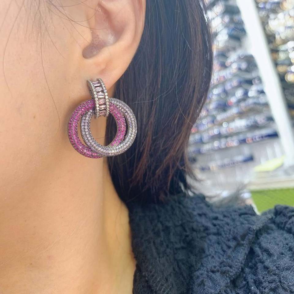 Hibide ต่างหูแบบไขว้สุดหรูสำหรับผู้หญิงต่างหูแบบห้อยเซอร์โคเนียคิวบิกเซอร์โคเนียสำหรับงานแต่งงาน E-694เครื่องประดับเจ้าสาว
