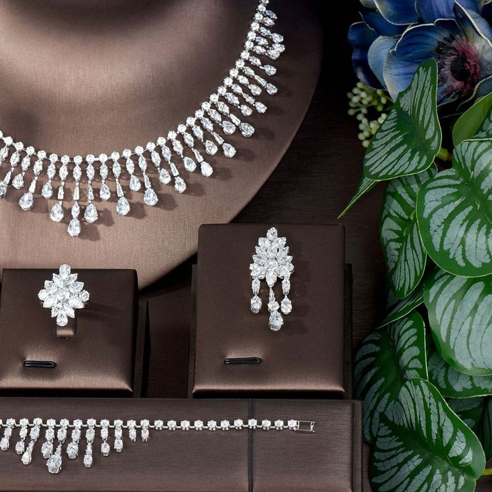 Hibide สร้อยคอสุดหรู4ชิ้นชุดเครื่องประดับสำหรับผู้หญิงสำหรับงานแต่งงานเพทายลูกบาศก์แอฟริกาดูไบเครื่องประดับเจ้าสาวเครื่องประดับ N-1727