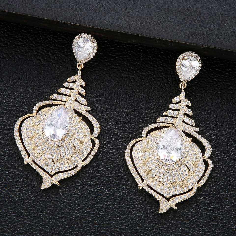 HiBride ต่างหูทรงเรขาคณิตสุดโรแมนติกแบบหรูหราต่างหูทรงลูกบาศก์เซอร์คอนสำหรับผู้หญิงต่างหูสำหรับงานแต่งงานของเจ้าสาว E-1028เครื่องประดับแฟชั่น