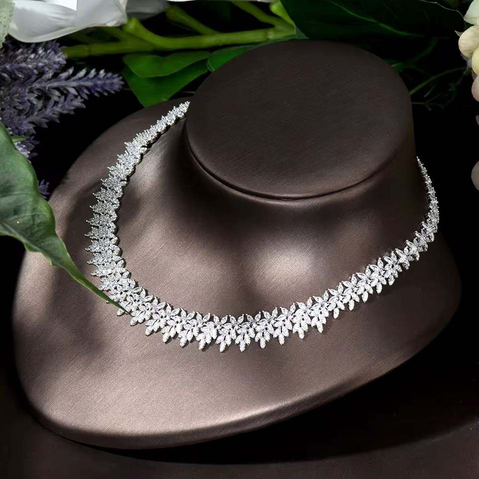 Hibride ประกาย AAA zircon ชุดเครื่องประดับเพื่อนเจ้าสาวชุดเครื่องประดับออกแบบใบชุดต่างหูสำหรับผู้หญิง N-1044 Bijoux Femme