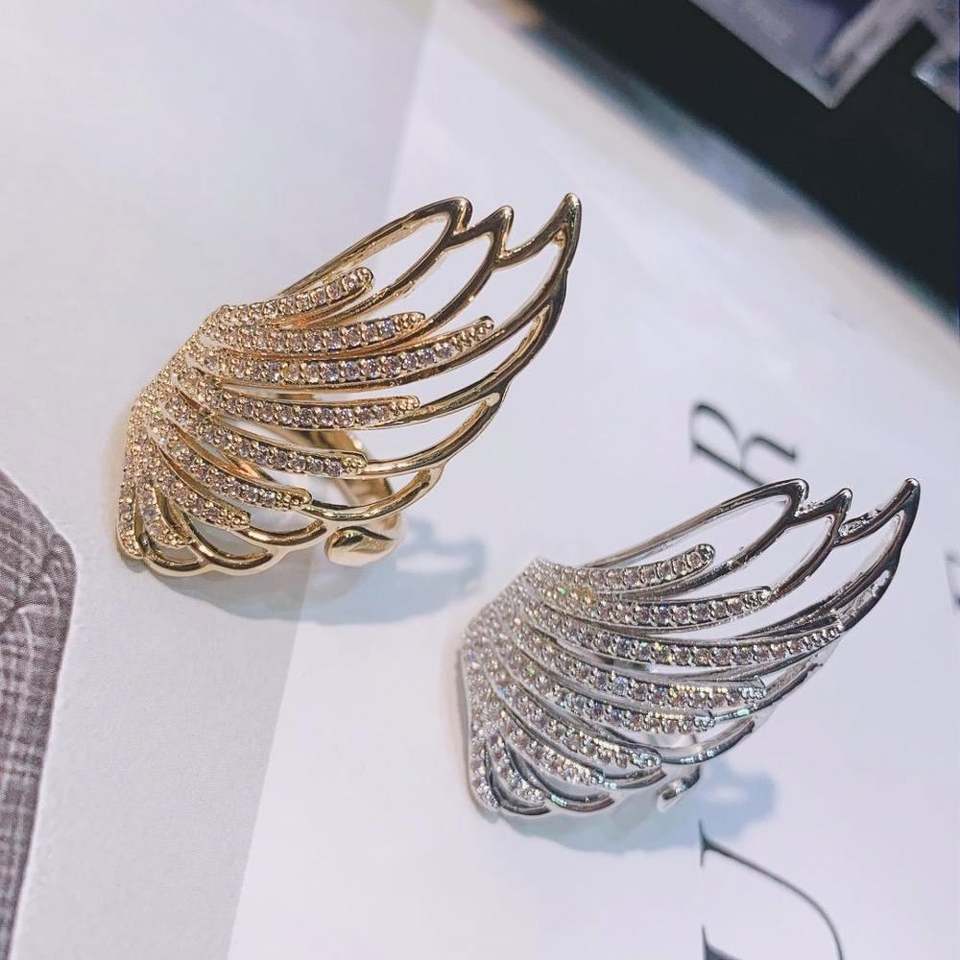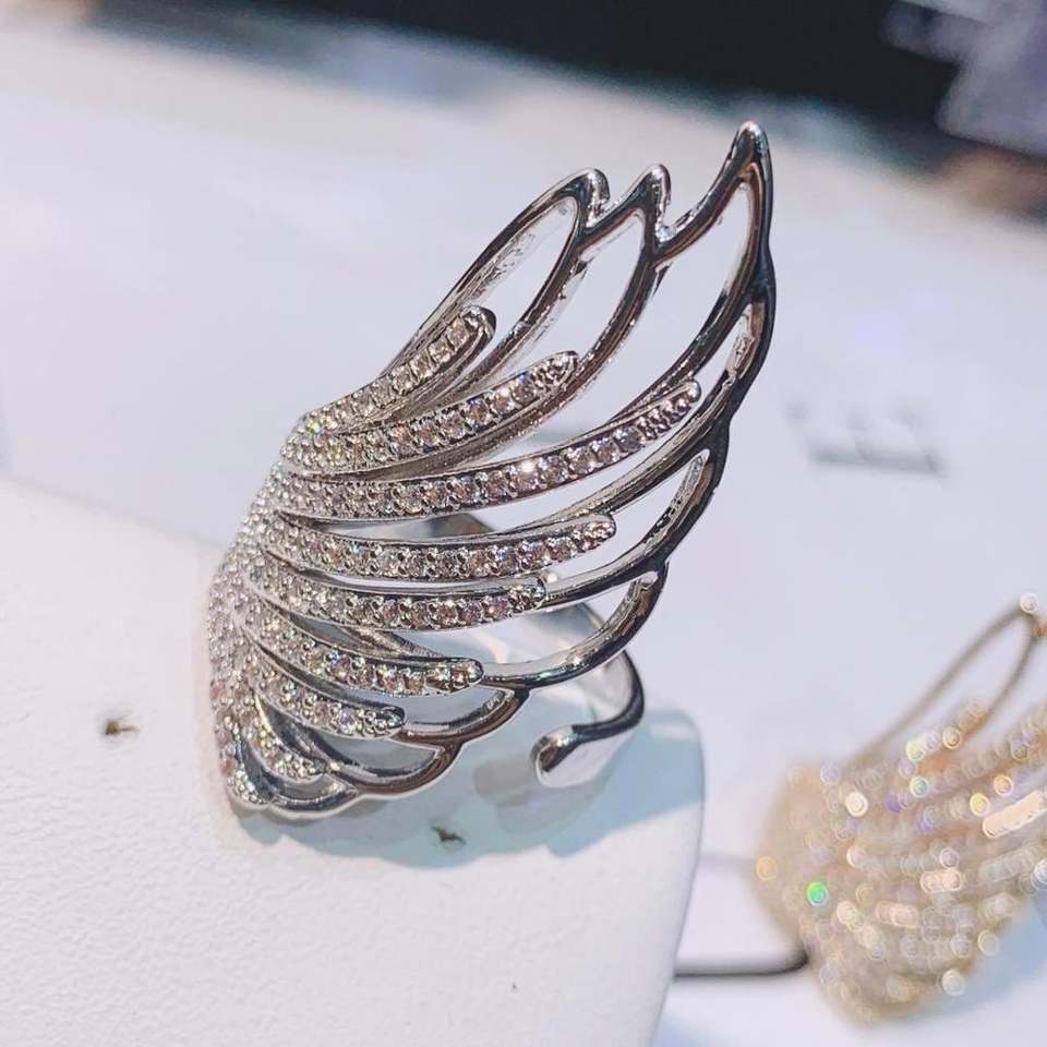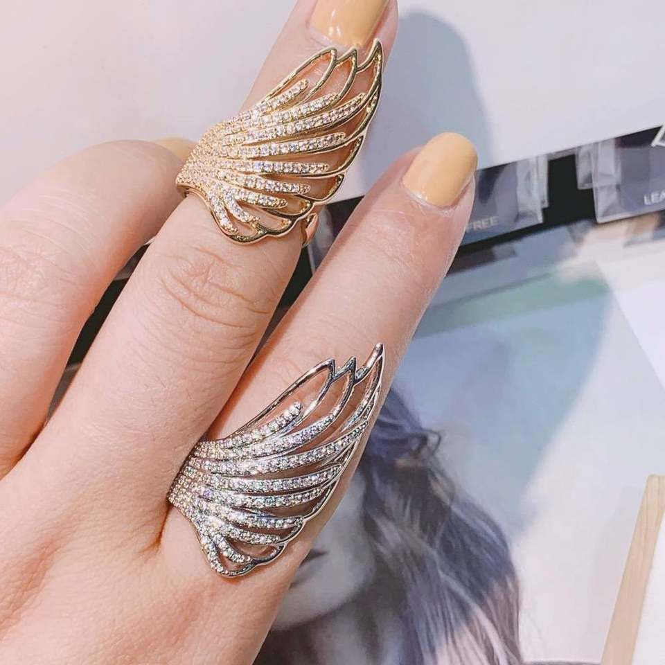 HIBRIDE Wing Feather Design Long Full Finger Luxury Cubic Zircon Women Wedding Engagement Party Wrap Ring Jewelry Bijoux R-172