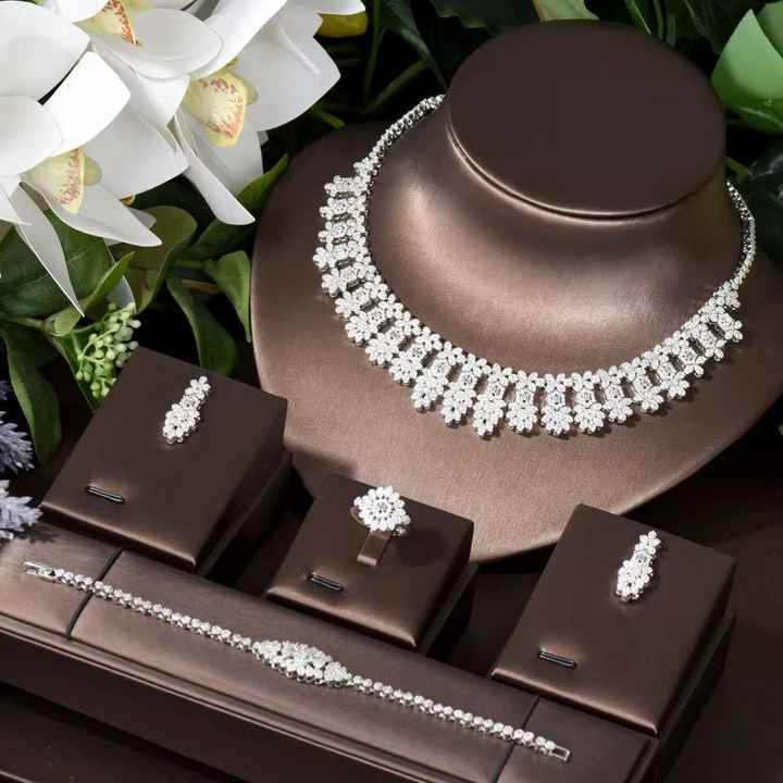ชุดเครื่องประดับเจ้าสาวสำหรับผู้หญิง hibride ชุดเครื่องประดับสร้อยคอต่างหูและสร้อยข้อมือเพชรสังเคราะห์แวววาวชุด N-505