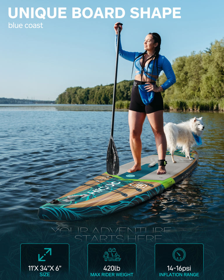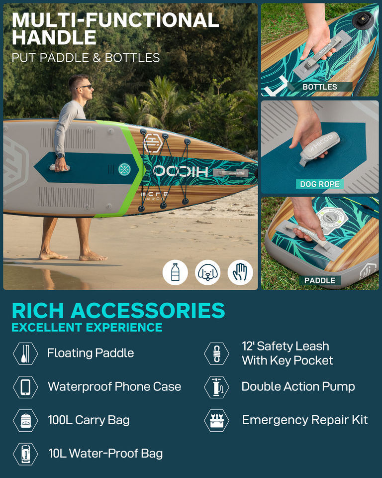 กระดานยืนพาย HICOO Widened Race Pro รุ่น OEM ลายไม้ แบบเป่าลม ขนาด 11'6''*34'*6'' พร้อมอุปกรณ์เสริม
