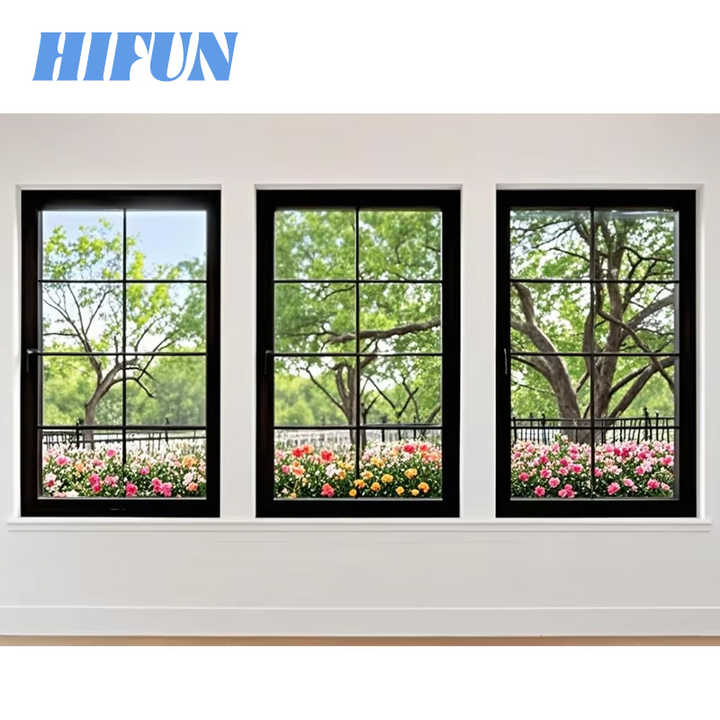 Hifun กันสาดหน้าต่างบานเลื่อนกระจกสองชั้นสีดำกันเสียงสำหรับโรงแรมทันสมัยงานตามสั่งหน้าต่างอลูมิเนียม
