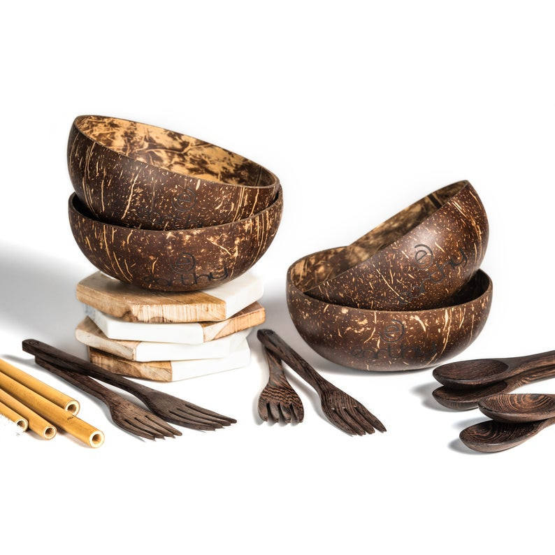 ชุดชามและช้อนทำจากเปลือกมะพร้าว คุณภาพสูง เป็นมิตรกับสิ่งแวดล้อม ปราศจากสาร BPA พร้อมโลโก้สั่งทำได้ ราคาขายส่งถูก จากเวียดนาม