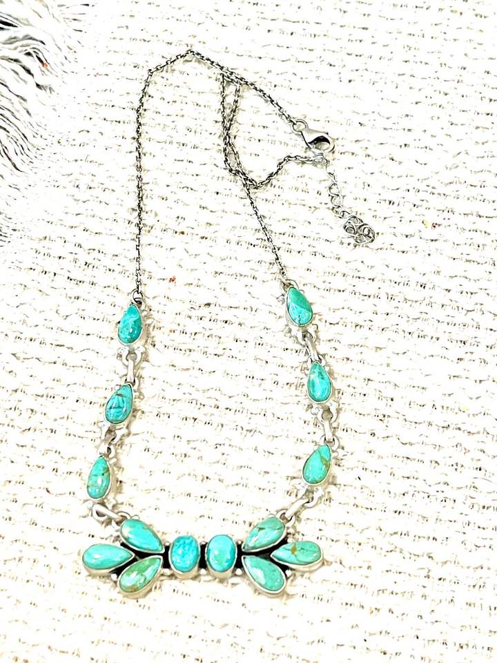 สร้อยคอเงินแท้สเตอร์ลิงคุณภาพสูง งานแฮนด์เมด ประดับด้วยเทอร์ควอยซ์คิงแมนและไวท์บัฟฟาโล