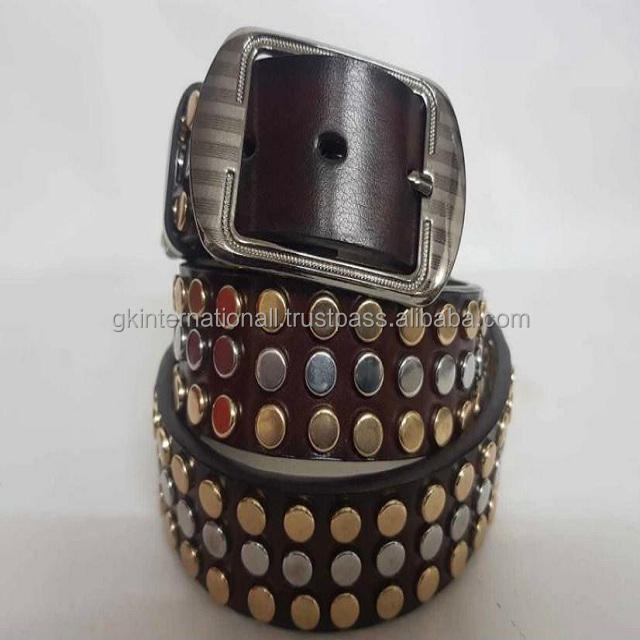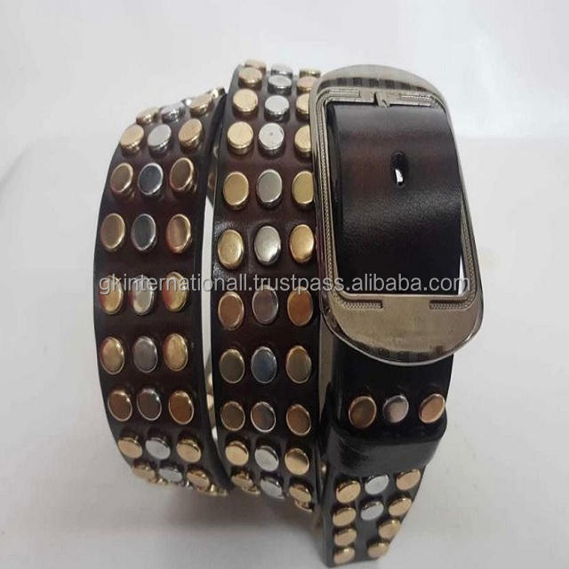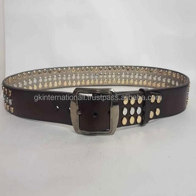เข็มขัดหมุดย้ำแบบลำลองคุณภาพสูงหนังพรีเมี่ยมสีน้ำตาลเข้มและหัวเข็มขัดแบบหมุดหนัก
