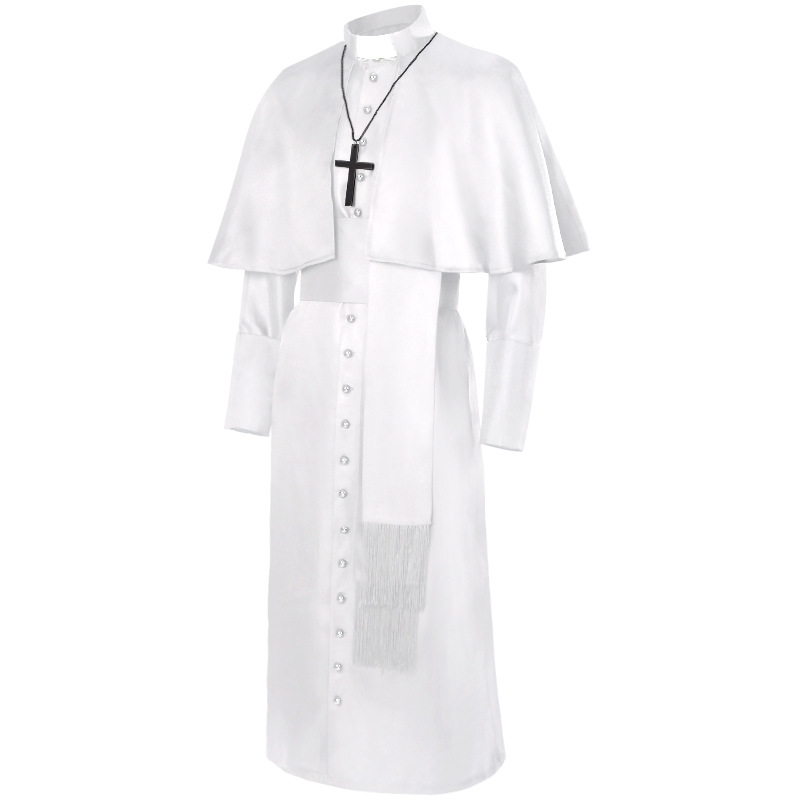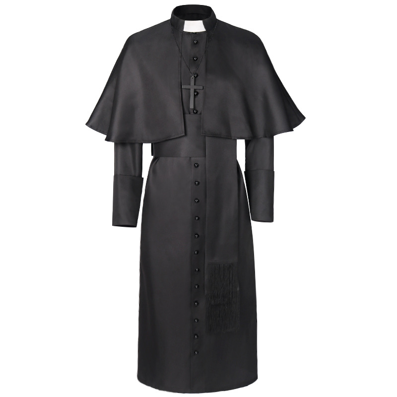 เสื้อคลุมฮาโลวีนสำหรับผู้ใหญ่ชุดคลุมนักบวชมีฮู้ดสำหรับนักบวชยุคกลางชุดคลุมผู้พิพากษาชุดคอสเพลย์สำหรับโบสถ์