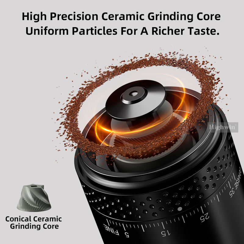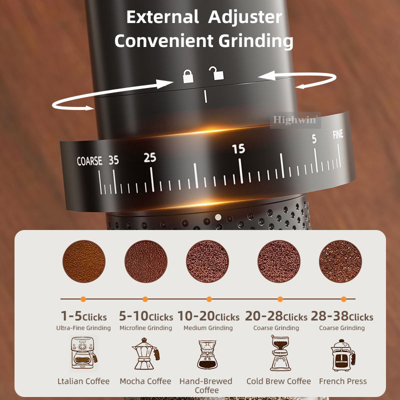 Highwin เครื่องบดกาแฟเอสเปรสโซ่อเนกประสงค์ปรับภายนอกเครื่องบดเมล็ดกาแฟแบบชาร์จไฟได้ Type-C