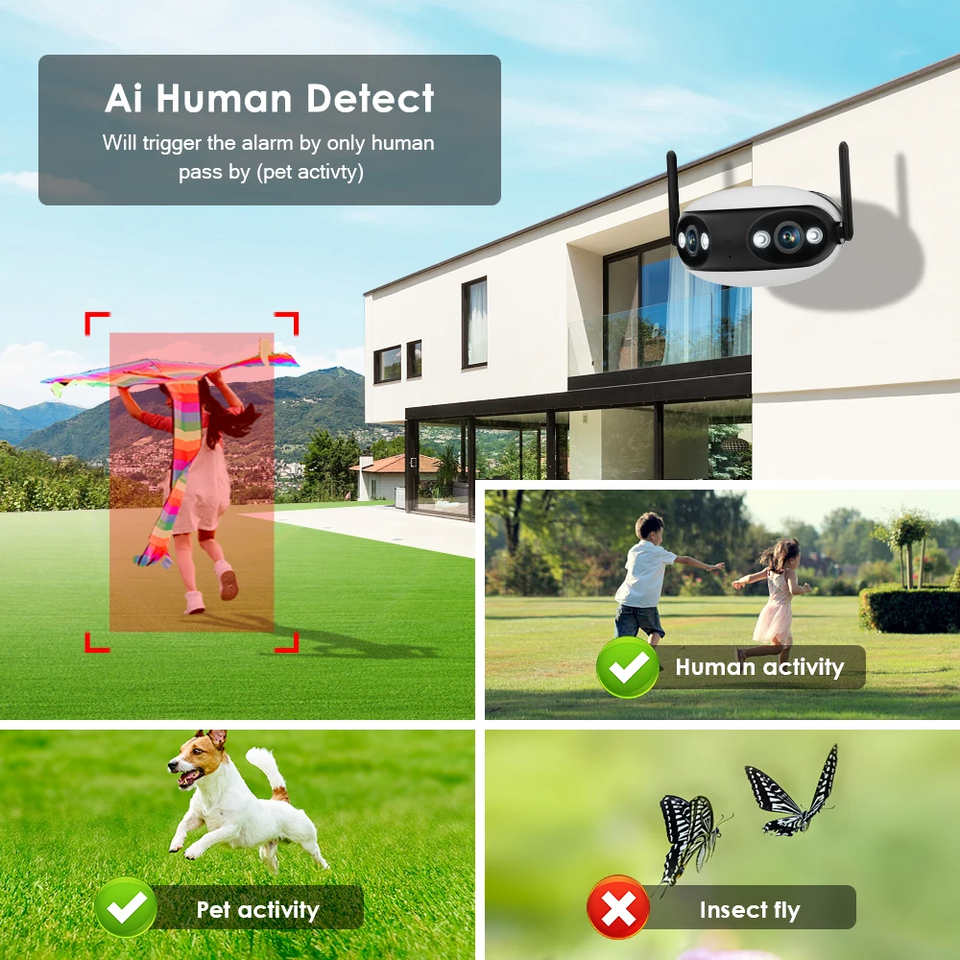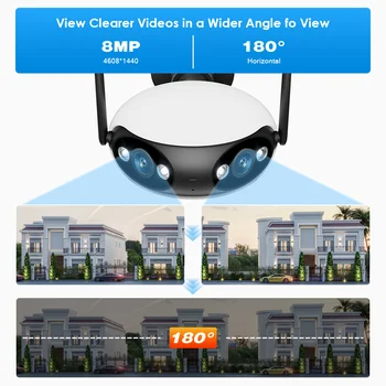 Hikwifi กล้อง4MP กลางแจ้ง4K 8MP กล้องส่องทางไกล WiFi 180องศาพาโนรามาเลนส์คู่ตรวจตราวีดีโอ icsee Alexa
