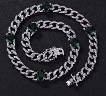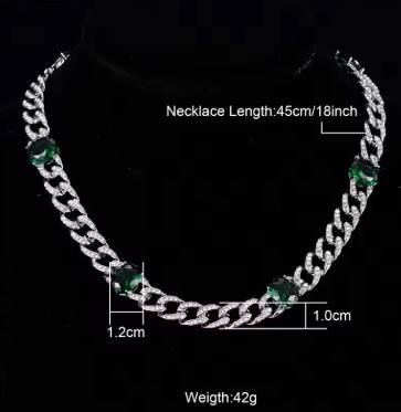 สร้อยคอหินรูปวงรีสีเขียว9มม./10มม./13มม. สร้อยคอสไตล์แร็ปเปอร์สไตล์ฮิปฮอปสไตล์คิวบาสำหรับผู้ชายและผู้หญิง