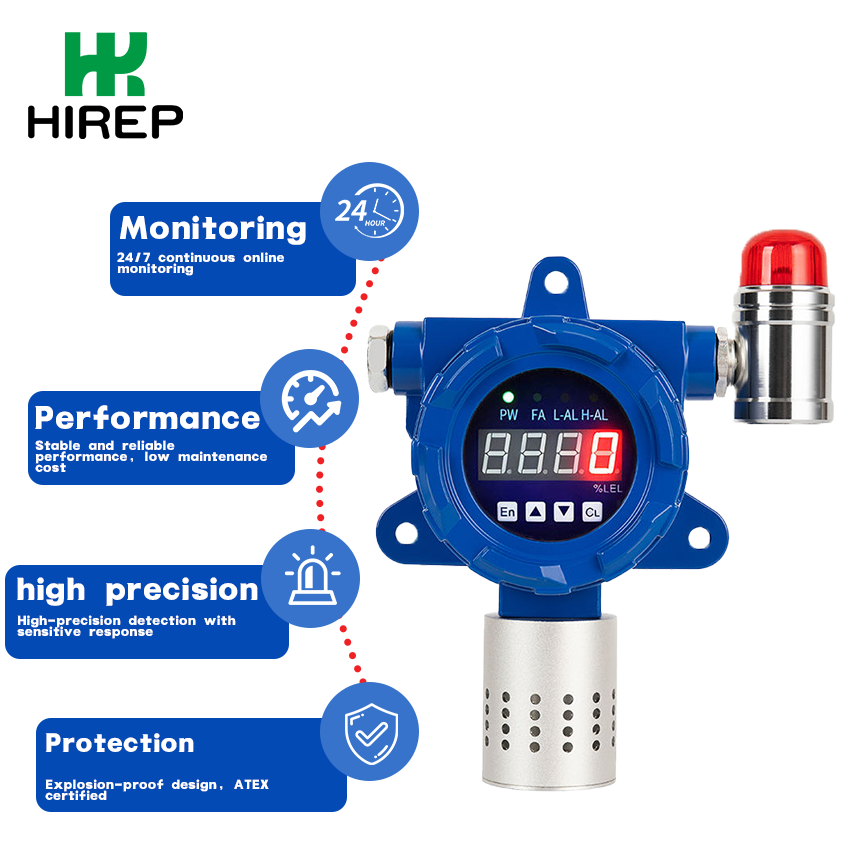 เครื่องตรวจจับฝุ่นระเบิดแบบดิจิตอล HIREP GT-H20 พร้อมหน้าจอแสดงผล ตรวจจับ PM2.5/PM10/PM1.0 เครื่องวิเคราะห์ก๊าซแบบติดตั้งถาวร ได้รับการรับรอง ATEX/FCC/SIL