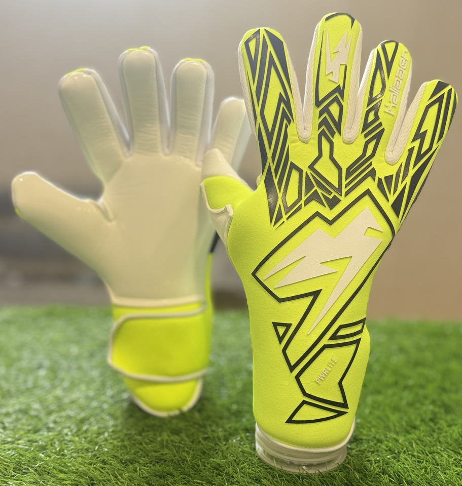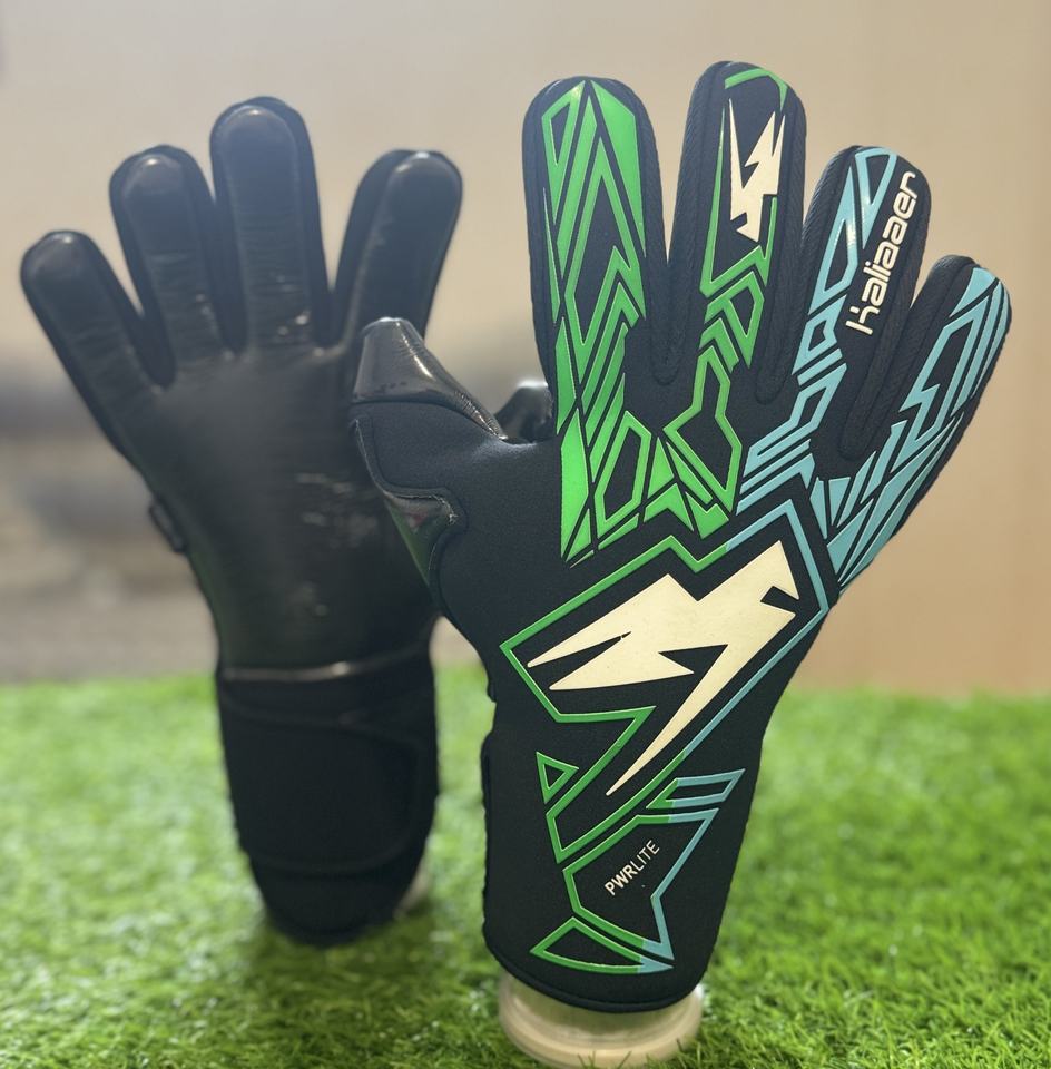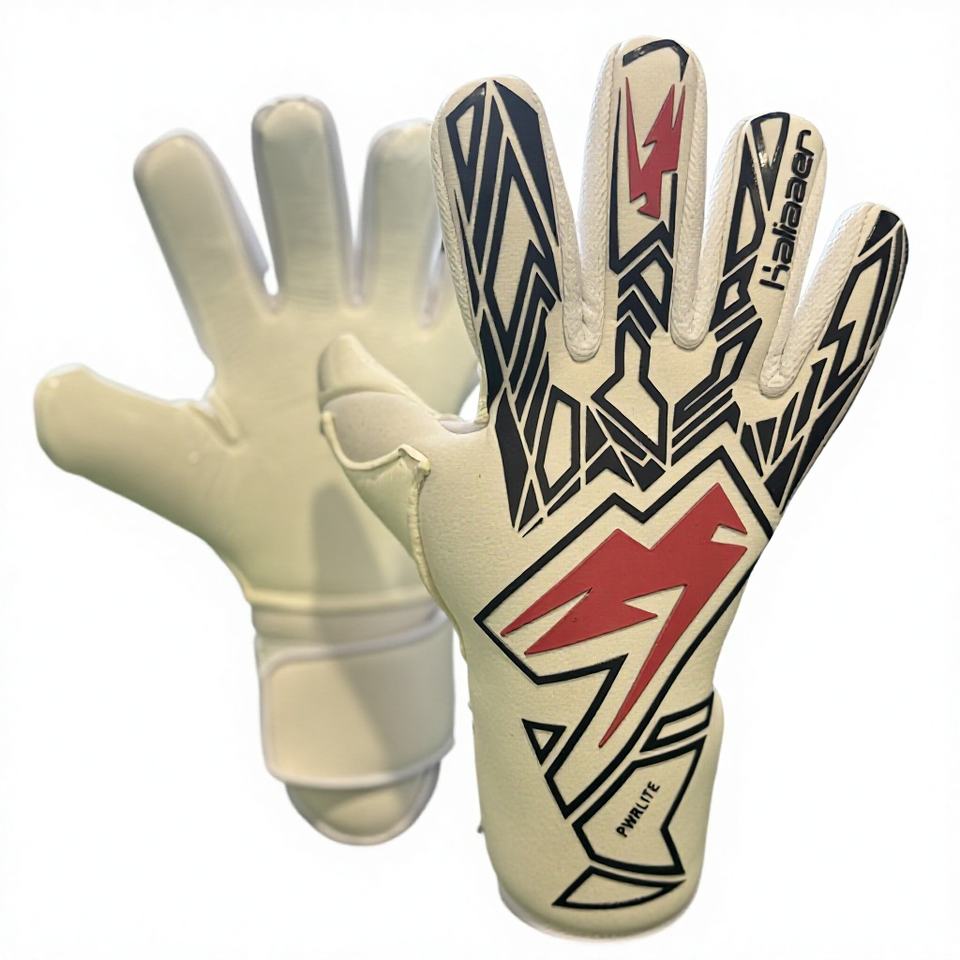ถุงมือผู้รักษาประตูฟุตบอล HIT HARD ระดับมืออาชีพ คุณภาพสูง ผลิตจากยางลาเท็กซ์เยอรมัน หนา 4 มม. สำหรับทุกเพศ ไม่มีแผ่นป้องกันนิ้วมือ ปิดด้วยแถบตีนตุ๊กแก