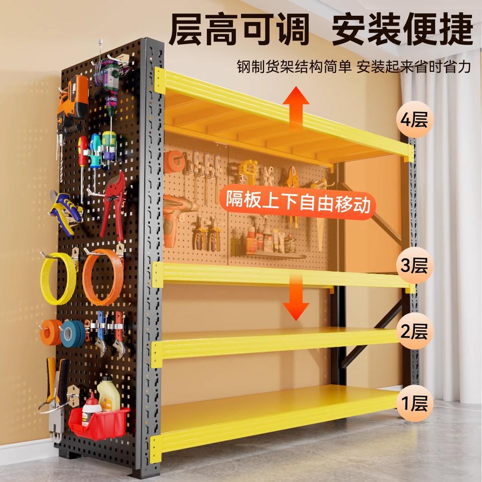 ชั้นวางของในโรงรถ HJ 4 ชั้น ชั้นวางของเหล็กกล้าคาร์บอน ชั้นวางโลหะสำหรับงานหนัก สำหรับจัดเก็บในโรงงานและคลังสินค้า