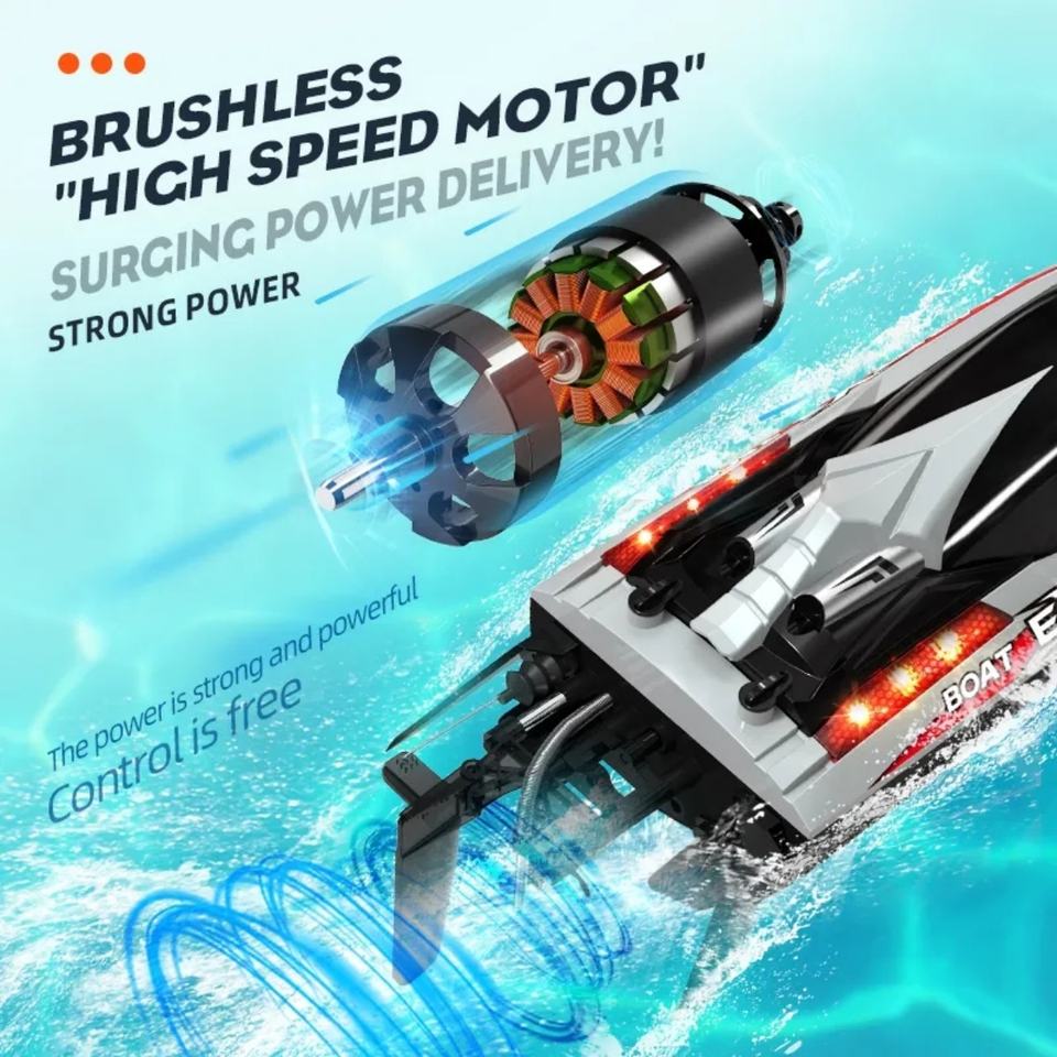 เรือยอชท์บังคับวิทยุ HJ816 2.4G ความเร็วสูง 55 กม./ชม. กันน้ำ พร้อมมอเตอร์ไร้แปรงถ่าน DC 11.1V แบตเตอรี่ลิเธียม 2500mAh พร้อมใช้งาน