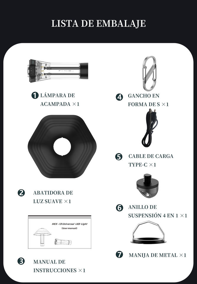 ไฟแคมป์ปิ้งพกพา HK Factory HEX-13 ชาร์จซ้ำได้ ปรับความสว่างได้ 5000mAh สำหรับเดินป่า สำรวจป่า ขั้นต่ำในการสั่งซื้อน้อย รับปรับแต่งได้