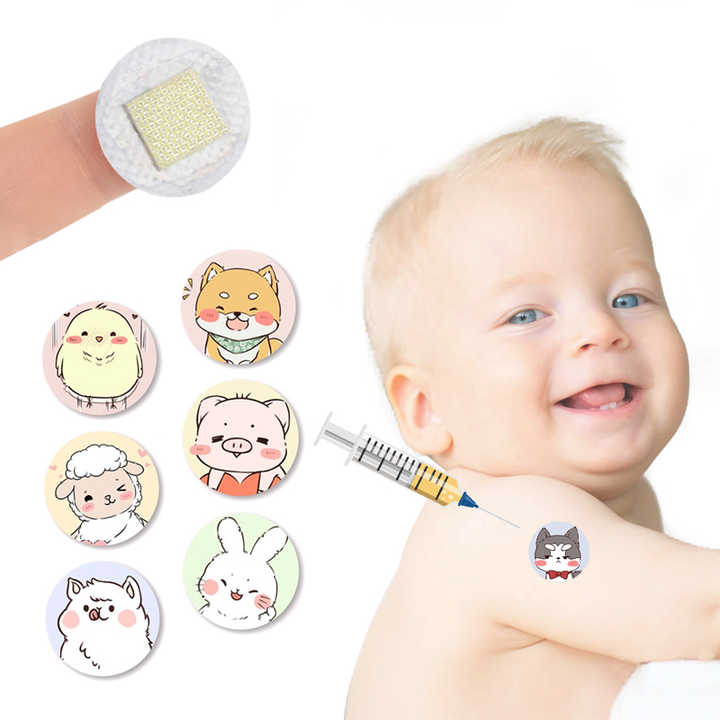 HK สติกเกอร์ป้องกันการฉีดวัคซีนทำจากวัสดุ PE แถบลายการ์ตูนน่ารักลายการ์ตูนกระเป๋าขนาดเล็กแบบพกพาเพื่อความปลอดภัย