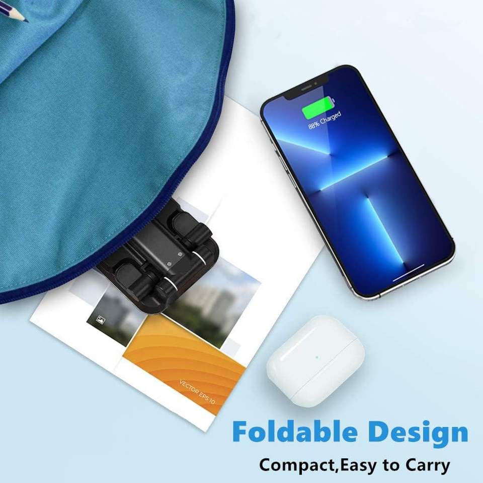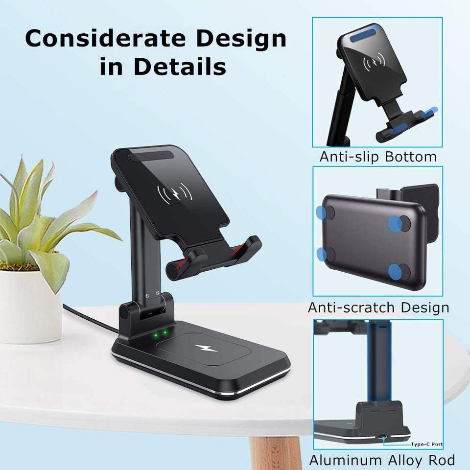 แท่นชาร์จไร้สายแบบพับได้ HK NT T6 15W ปรับมุมและระดับความสูงได้ รองรับการชาร์จโทรศัพท์แบบคู่ 10W