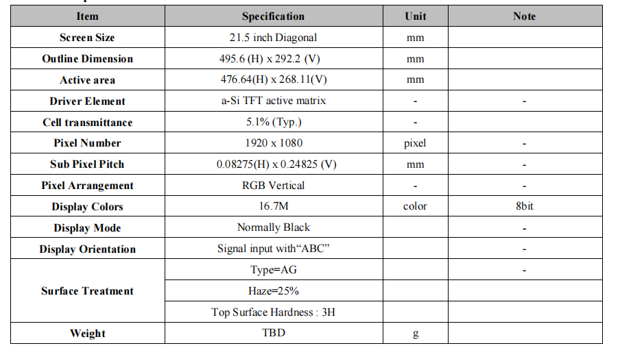 Active area:476.64(H) x 268.11( V)