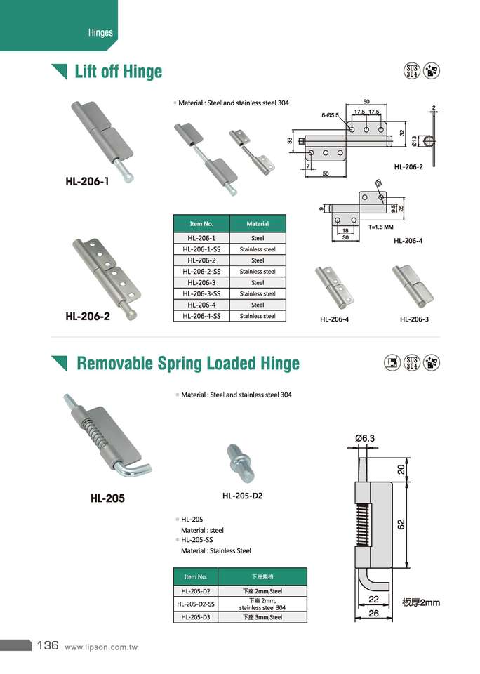 Model Number:HL-206-3 door flag ping hinge
