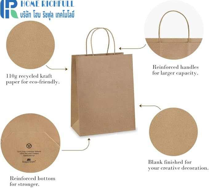 ถุงกระดาษคราฟท์ย่อยสลายได้ HL ออกแบบโลโก้/กราฟิกตามสั่ง