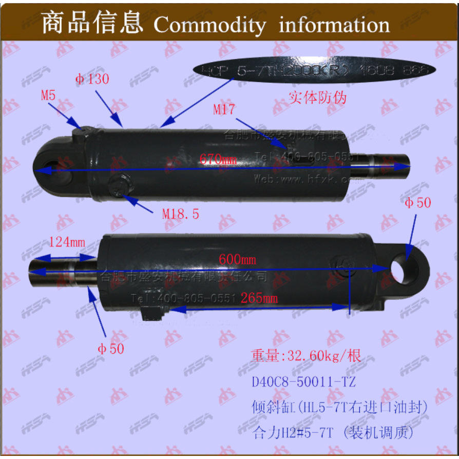 ซีลน้ำมันทางเข้าด้านขวา HL5-7T เอียงชิ้นส่วนกระบอกสูบสำหรับรถยก Heli H2 #5-7T D40C8-50011ก้านลูกสูบชุบโครเมี่ยมแข็ง