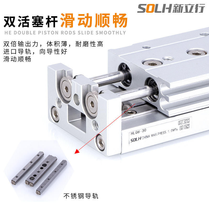 กระบอกไฮดรอลิกซีรีส์ HLQ พร้อมรางเลื่อนสแตนเลส ขนาด 20/25-10X20X30X40X50X75X125X150S