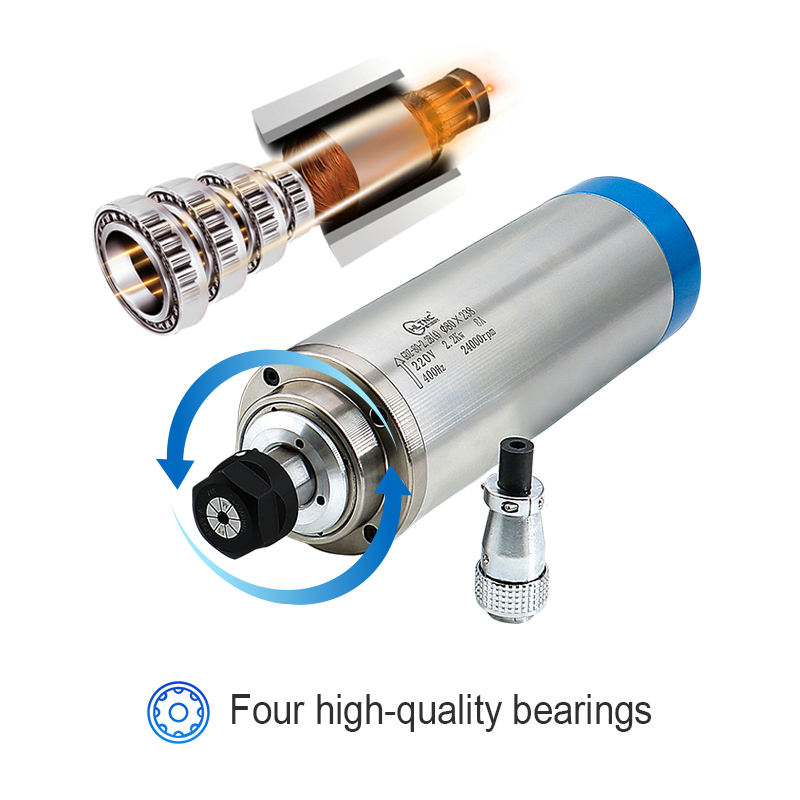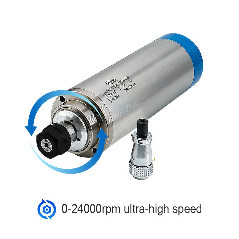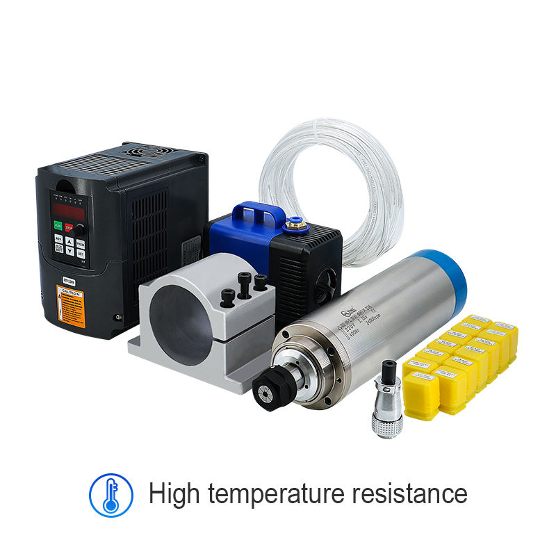 ชุดมอเตอร์แกนหมุนระบายความร้อนด้วยน้ำ HLTNC 2.2KW 220V พร้อมอินเวอร์เตอร์ ตัวหนีบแกนหมุนขนาด 80 มม. พร้อมหัวจับ ER20 จำนวน 4 หัว สำหรับเครื่อง CNC Router