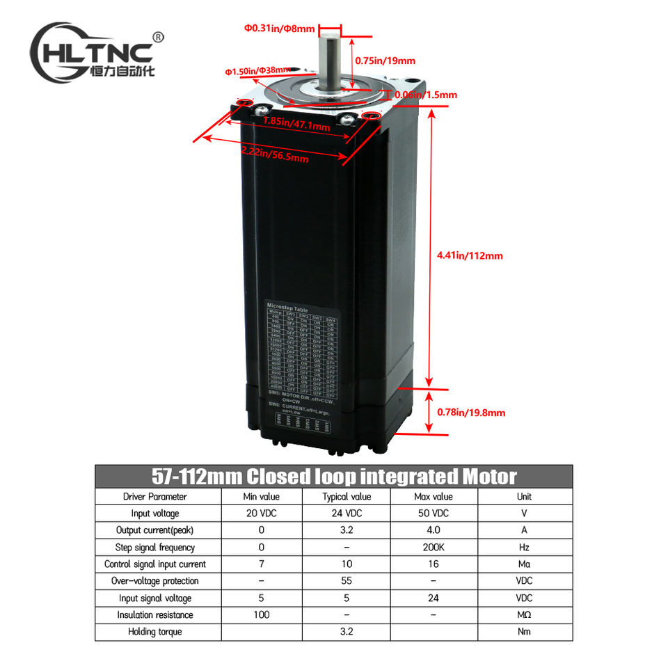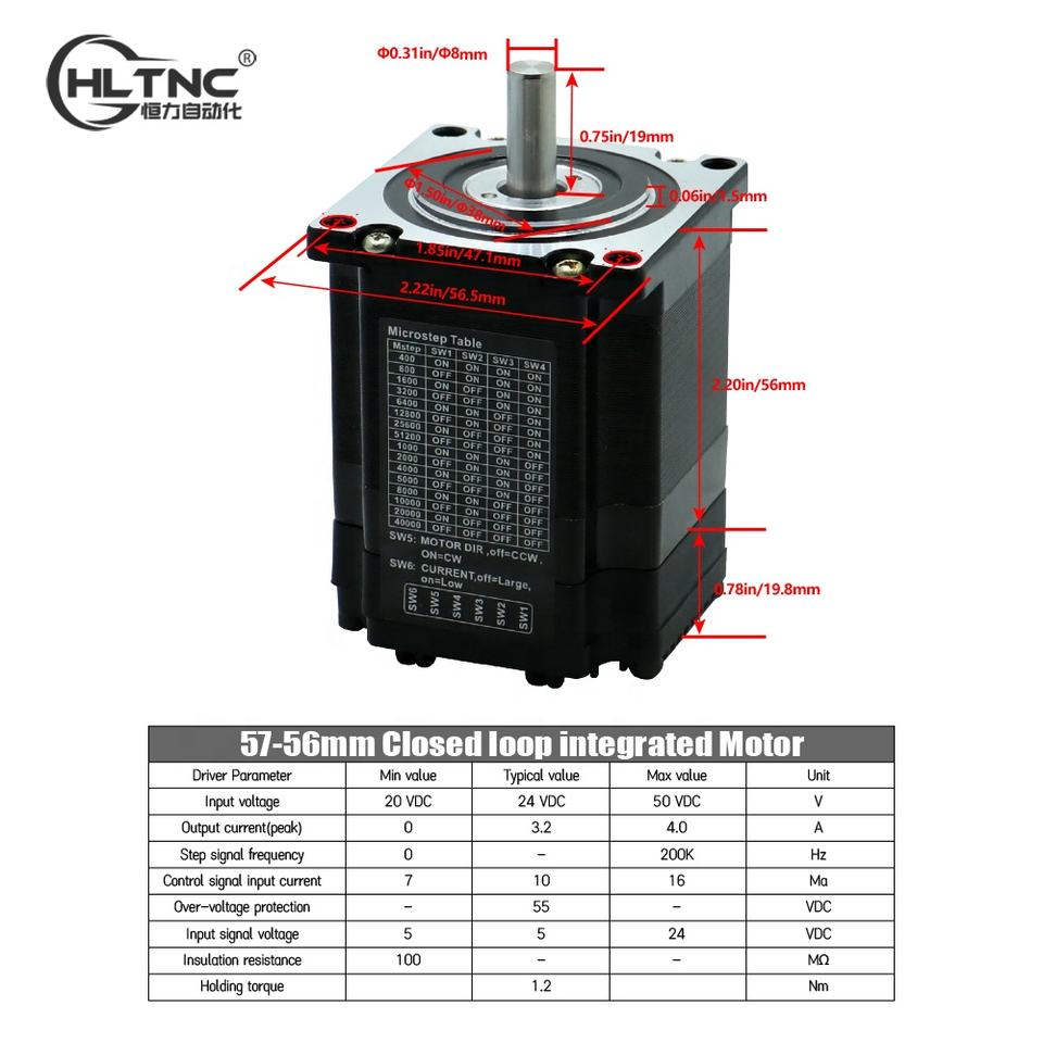 มอเตอร์สเต็ปเปอร์แบบวงปิด HLTNC 2 เฟส ไฮบริด 57-76 มม. Nema23 2.2 นิวตันเมตร พร้อมไดรเวอร์
