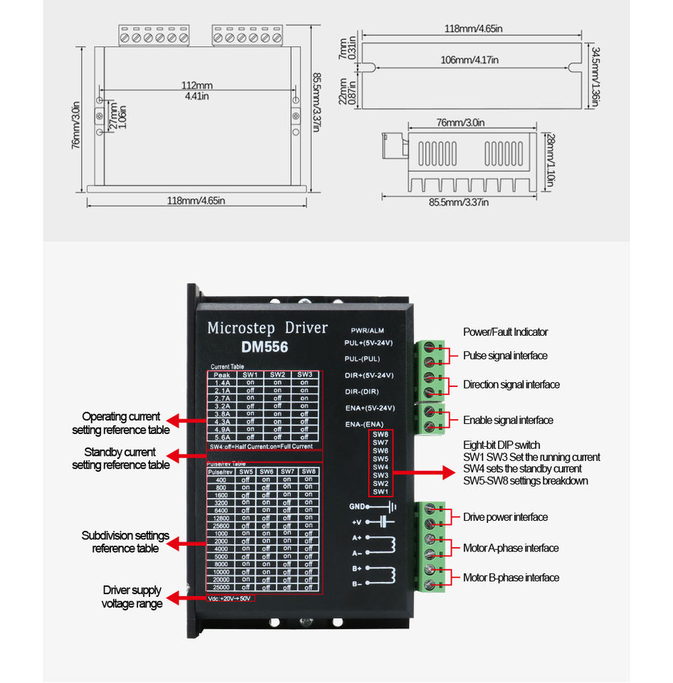 Hltnc มอเตอร์ขับเคลื่อนสองเฟส DM542 DM556P DM556สำหรับเราเตอร์ CNC ไดรเวอร์มอเตอร์ NEMA 23 57