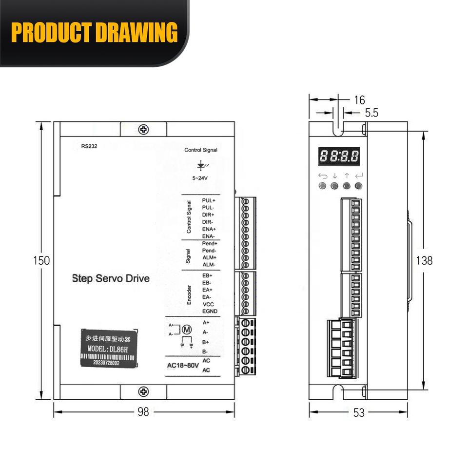 ชื่อผลิตภัณฑ์:DL86H แสดงผลดิจิตอลแบบ Closed-LOOP 86 Step Servo DRIVER