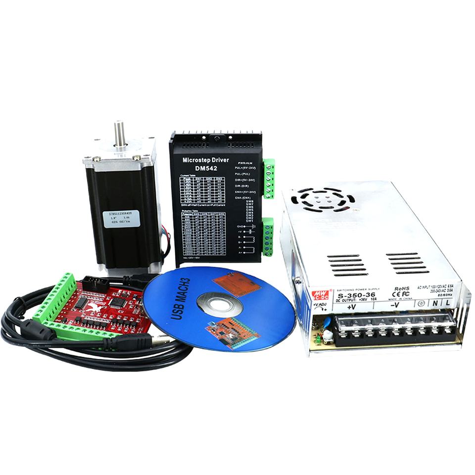 HLTNC ชุด Nema23 4แกนสำหรับ3Nm สเต็ปเปอร์มอเตอร์ + DM542ไดรเวอร์ + แหล่งจ่ายไฟ350W 36V + แผงควบคุม USB 4แกนสำหรับ CNC