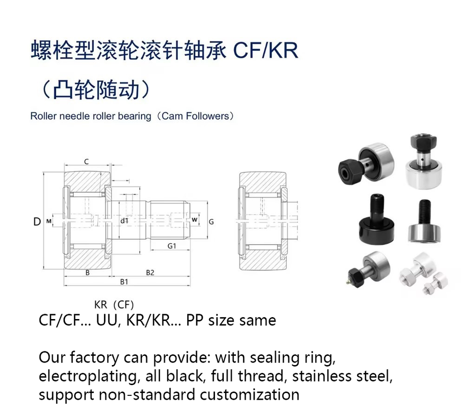 ตลับลูกปืนเม็ดกลมแบบลูกกลิ้ง HLTNC ชนิดสลักเกลียว CAM ตลับลูกปืนเม็ดกลมแบบเส้นตรง KR10/CF3 KR12/CF4 KR13/CF5 KR16/CF6 KR19/CF8 สำหรับเครื่อง CNC