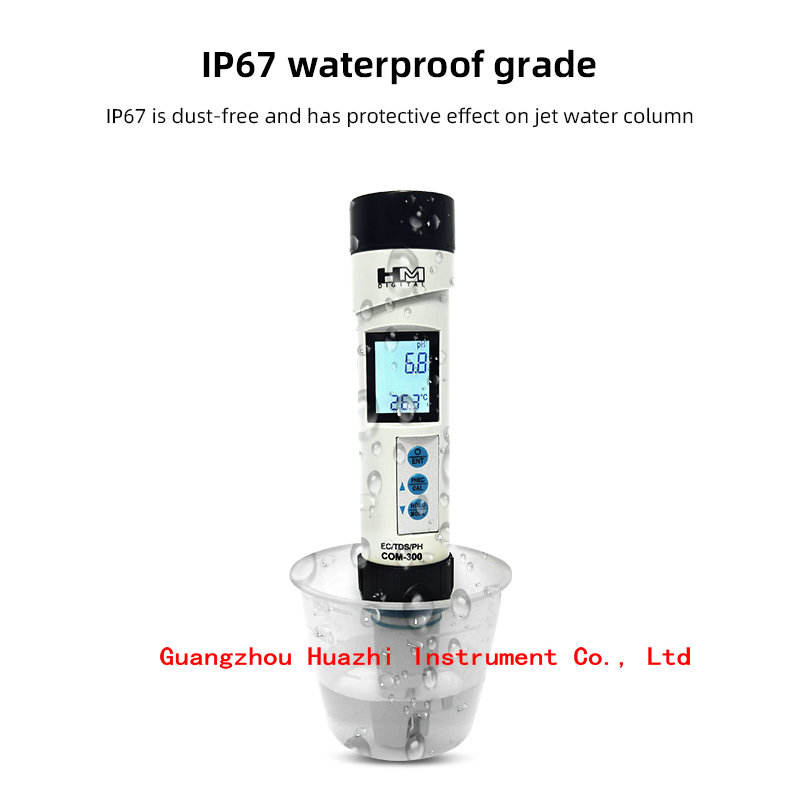 HM ดิจิตอล COM-300 4 in 1 กันน้ํา PH EC TDS เครื่องวัดอุณหภูมิปากกาตรวจจับ ph