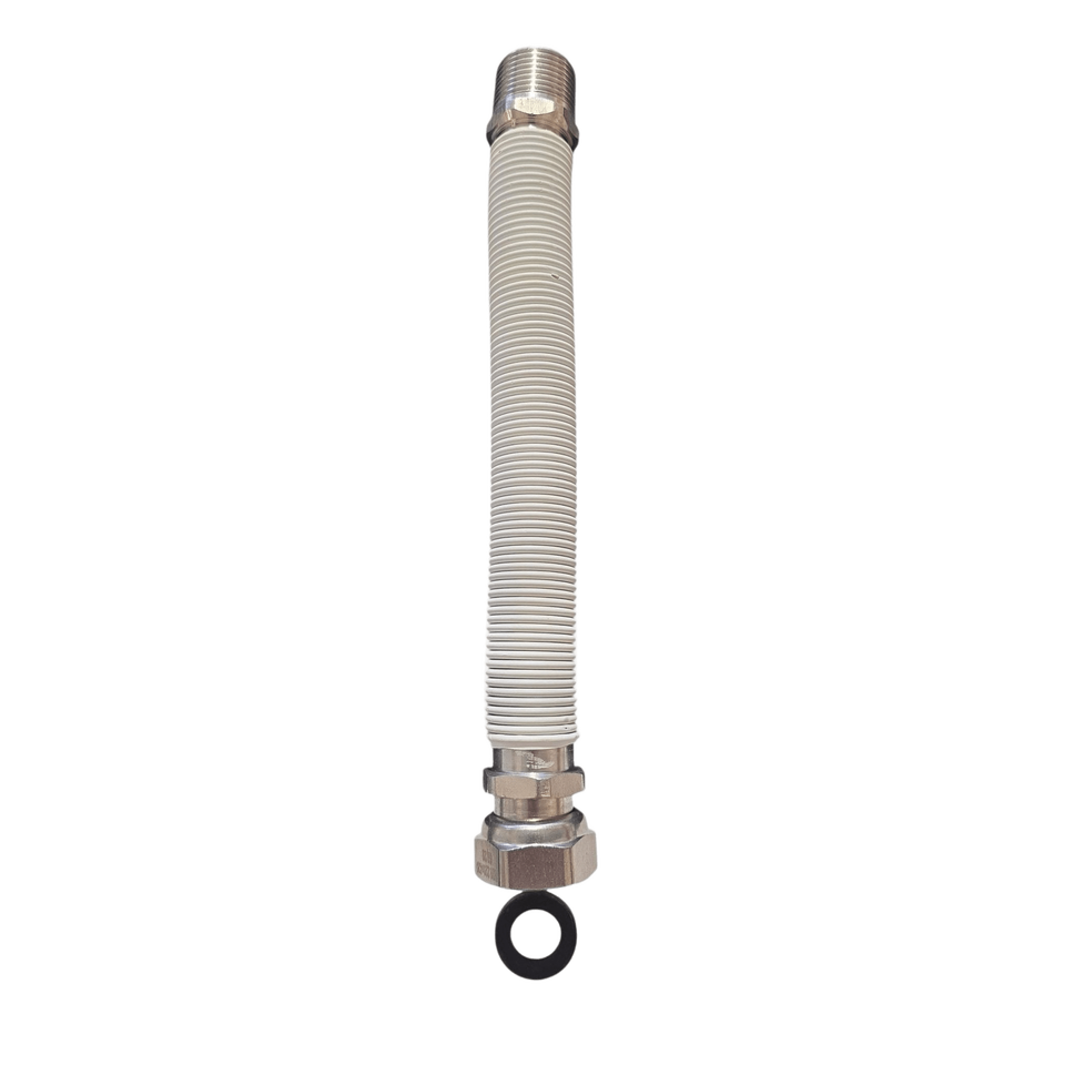 ข้อต่อน้ำแบบยืดหยุ่นเคลือบสีขาว HM สแตนเลส สำหรับหม้อต้ม MF 1/2 3/4 ความยาวปรับได้ 130 420 มม. ทนทานต่อการกัดกร่อน