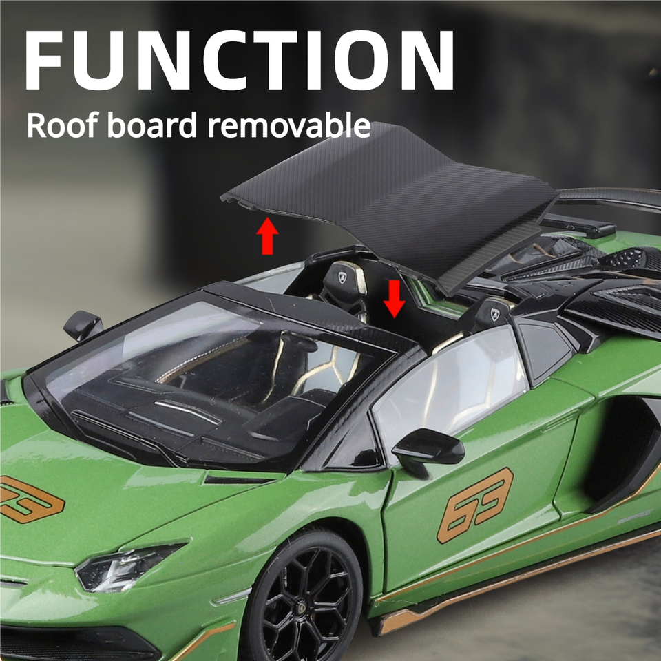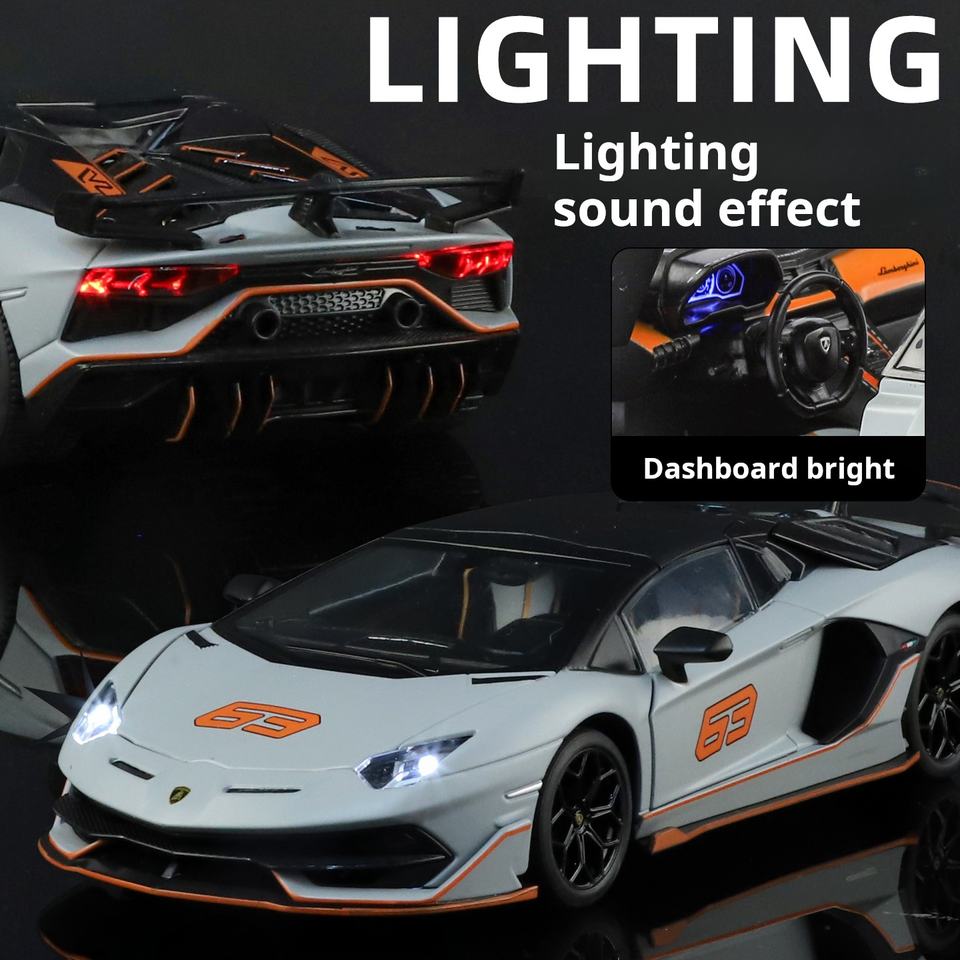 รถสปอร์ต HMB Svj63 รุ่นอัลลอยด์ไดแคสต์ ของเล่นเด็ก ของขวัญคุณภาพสูง พร้อมเอฟเฟกต์แสงและเสียง ขนาด 1:24 แบบดึงถอยหลัง