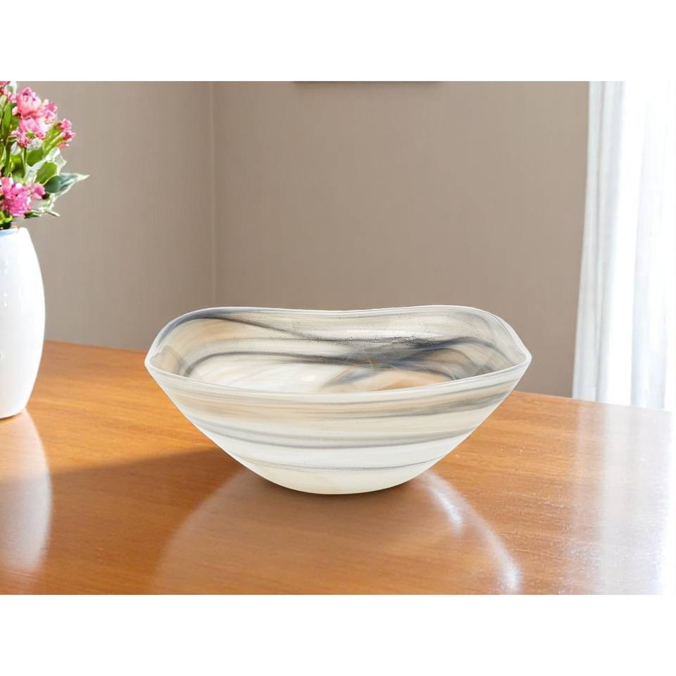 HMS 10\" Gray Taupe and White Alabaster Square Salad Bowl Elegant Glass Design for Displaying Your Favorite Salads