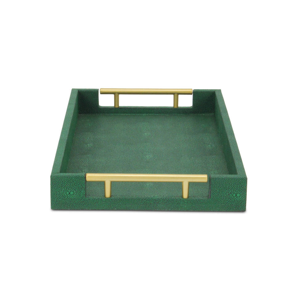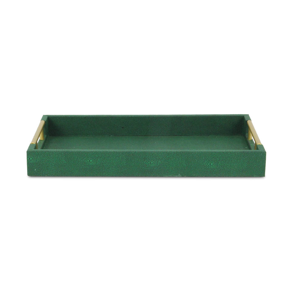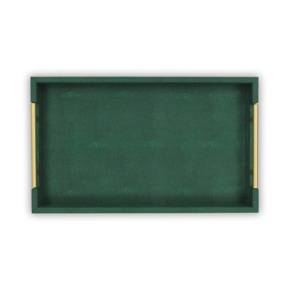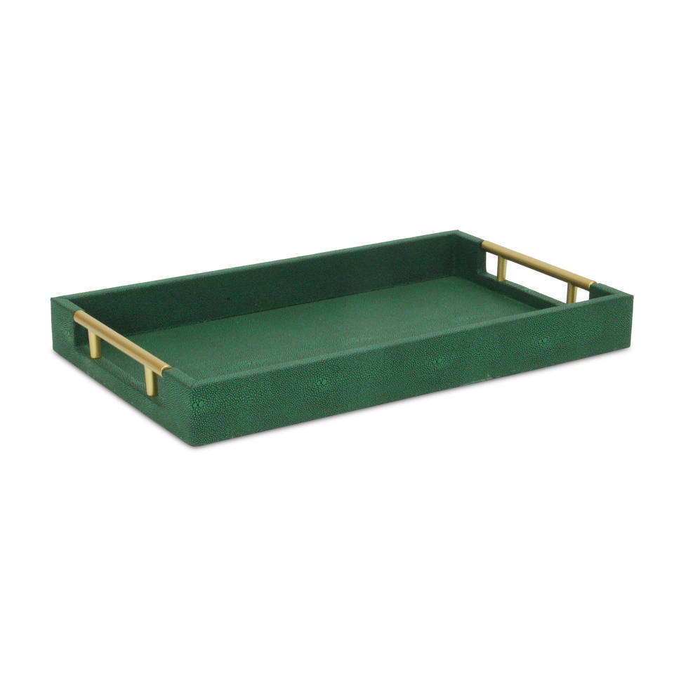 HMS 16\" Green Faux Shagreen Wood Serving Tray with Handles