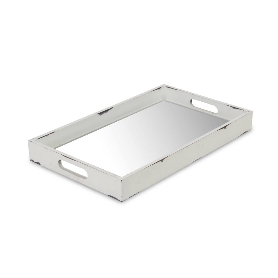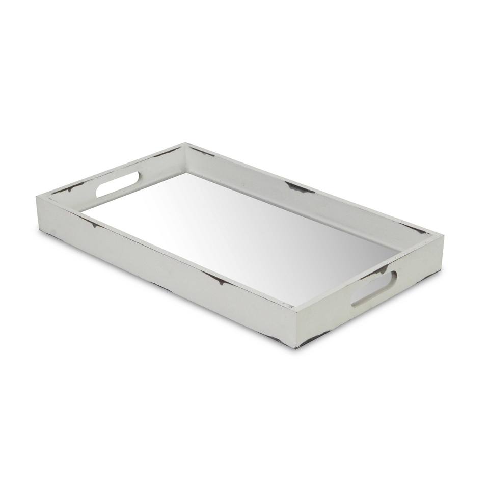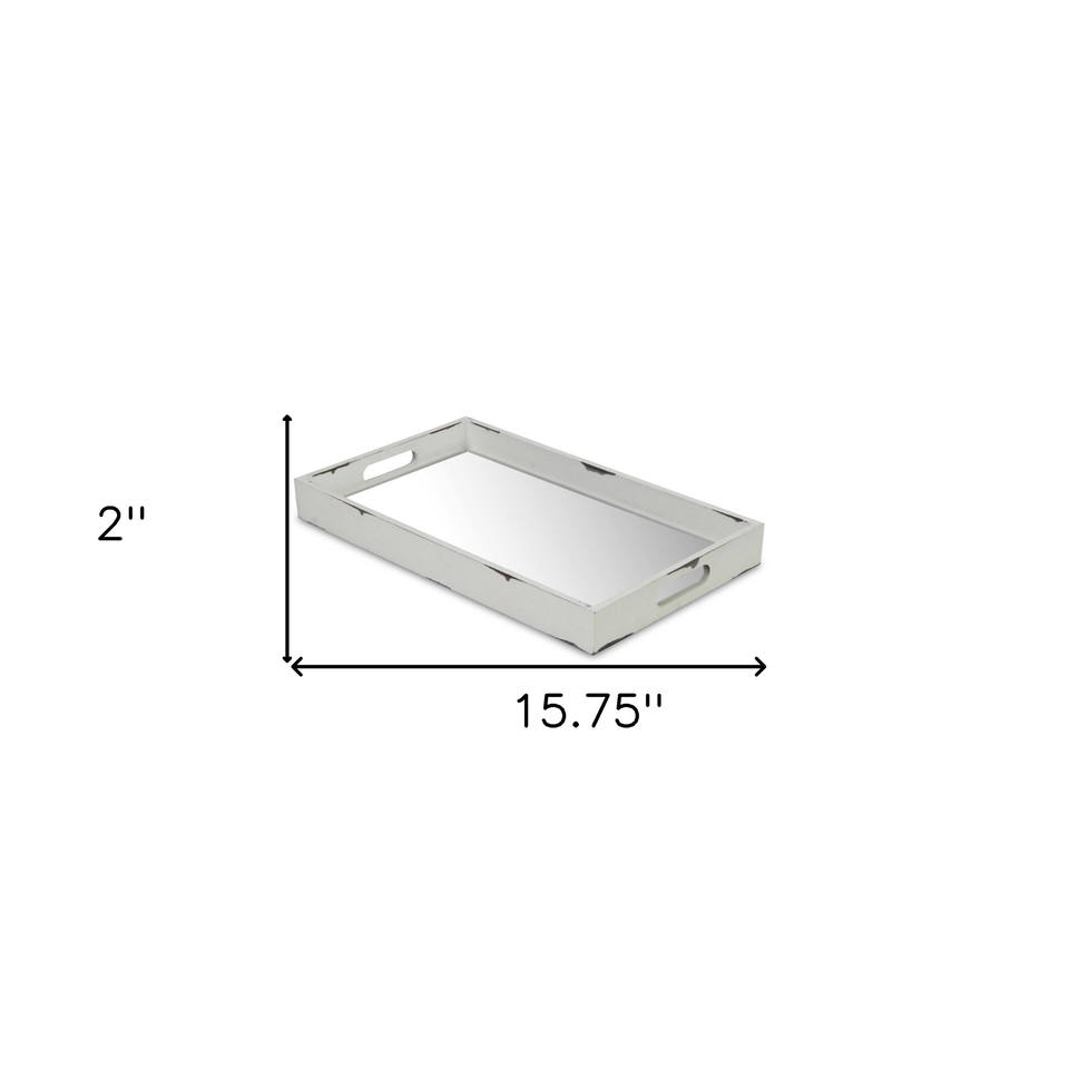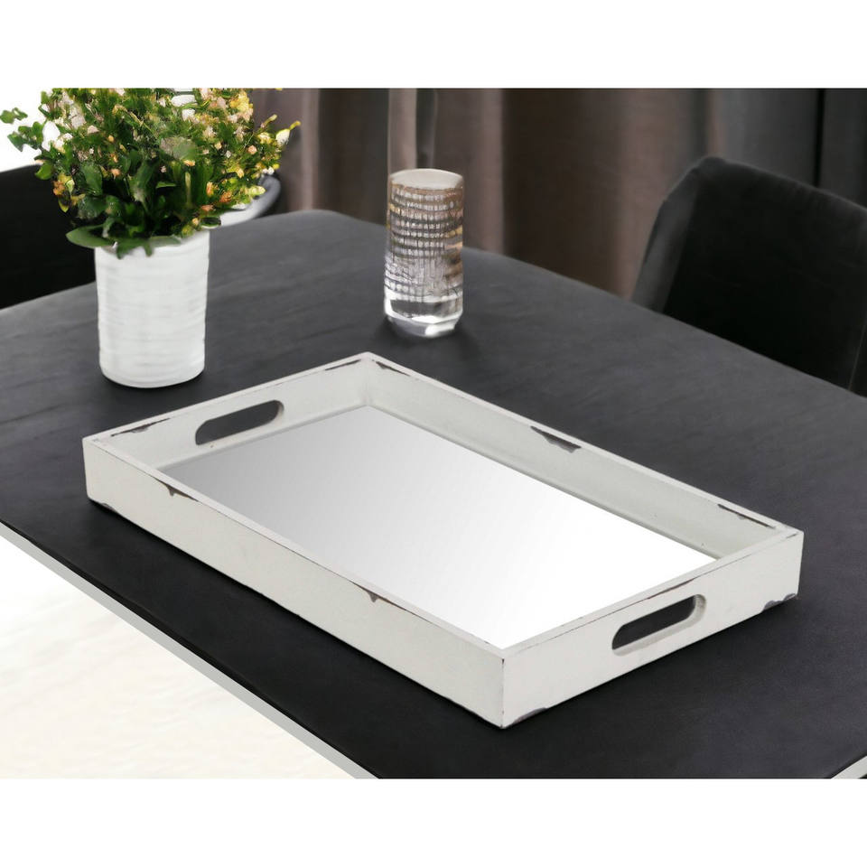 HMS 16\" White Antique Indoor/Outdoor Serving Tray Eco-Friendly Wood and Metal with Handles Food-Safe for Serving