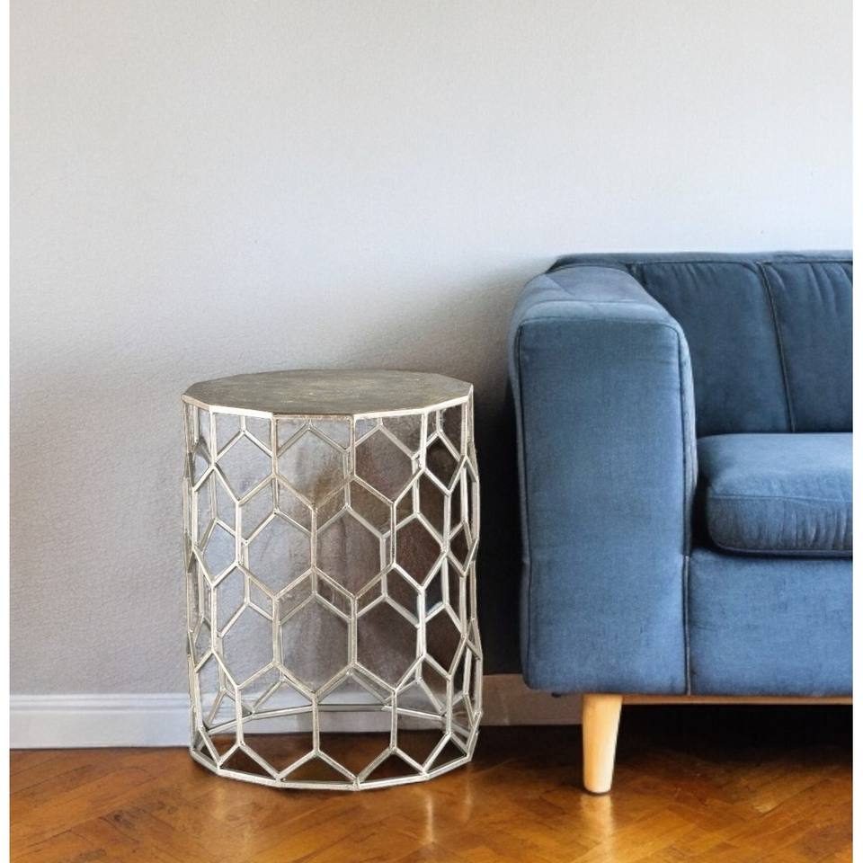 HMS 18\" Antiqued Gold Honeycomb Hexagonal End Table Mango Wood Tea Table with Glass Top for Living Room Furniture for House Use