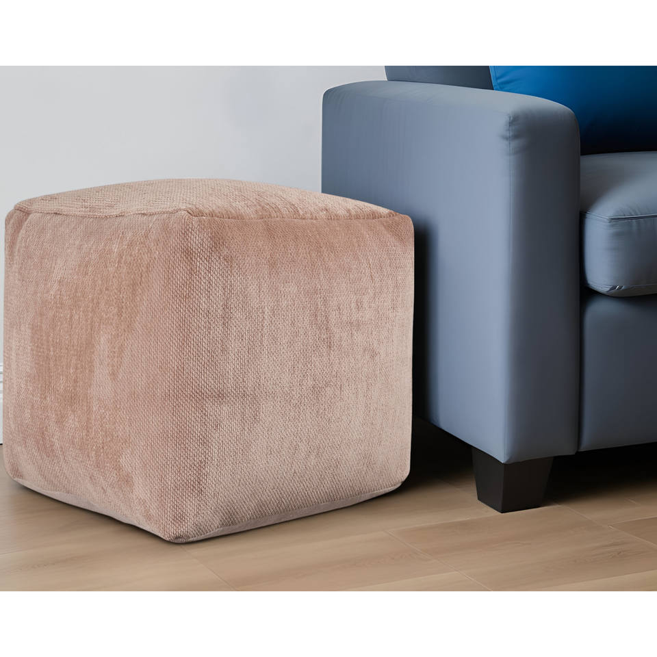 HMS 18\" Beige Chenille Cube Pouf Ottoman Foldable and Convertible Square Stool for Bedroom Living Room Home or Hotel Use