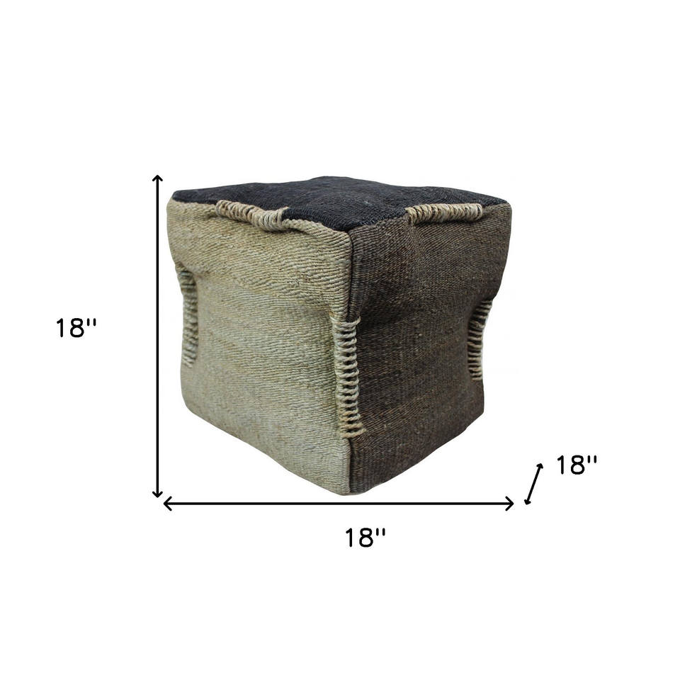 HMS 18\" Black and Taupe Jute Cube Pouf Ottoman Foldable Square Bench for Outdoor/Bedroom Use for Kids and Babies