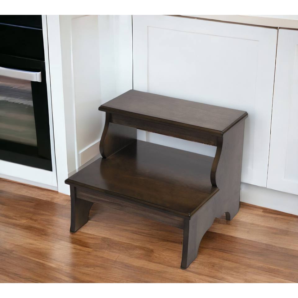 HMS 18\" Brown Solid Wood Step Stool Portable Adjustable Ottoman Bedroom Living Room Convertible Foldable Storage Scandinavian