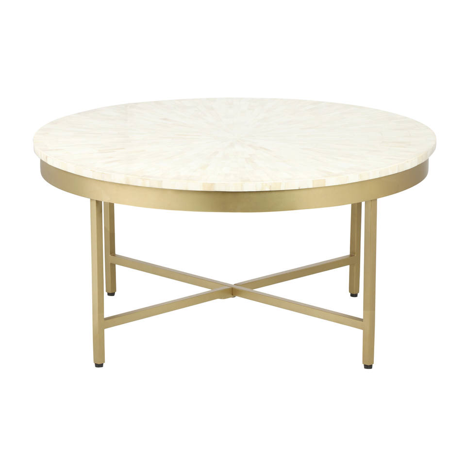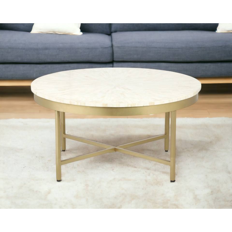 HMS 18\" Classic Round Coffee Table Ivory and Gold Wood & Steel with Tempered Glass & Sintered Stone for Living Room