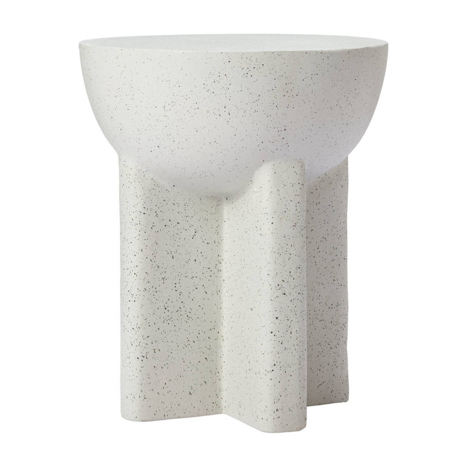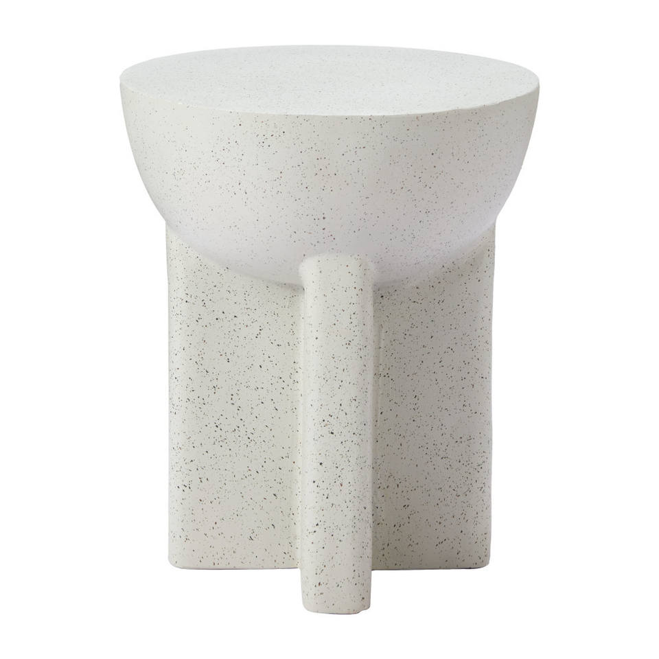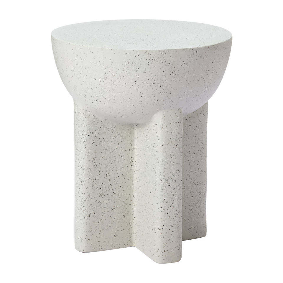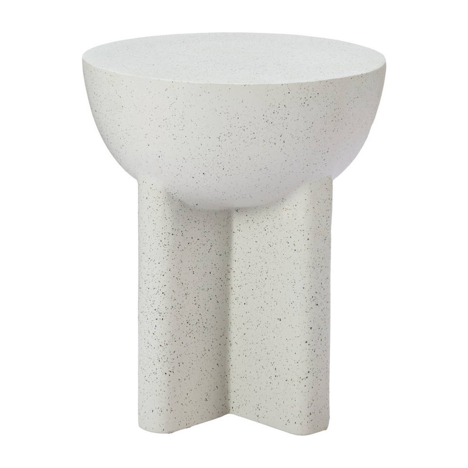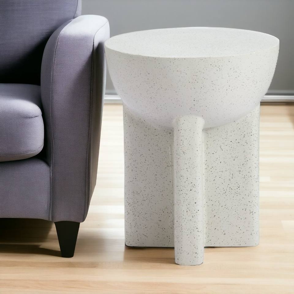 HMS 18\" White Faux Stone Round Pedestal End Table for Living Room Home Office or Dining General Use Furniture