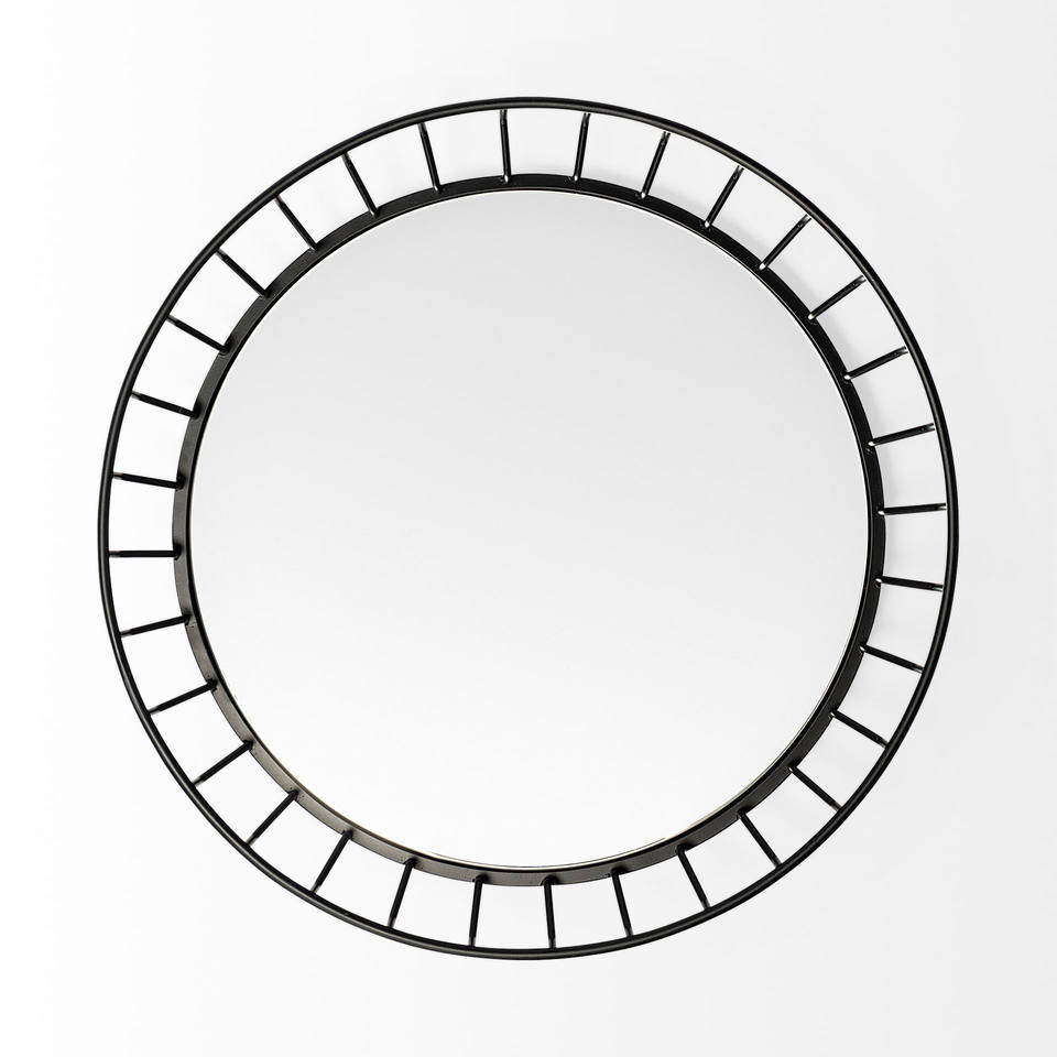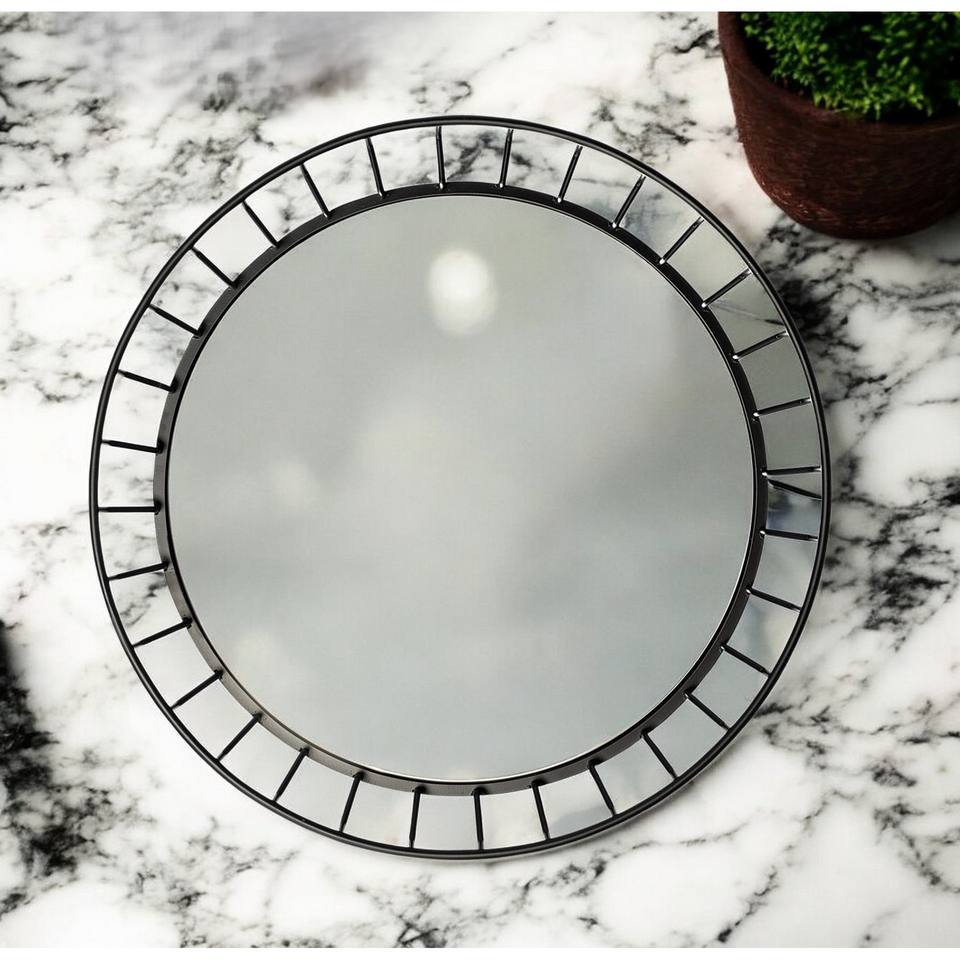 HMS 20\" Black Round Metal Serving Tray with Handles for Indoor and Outdoor Use