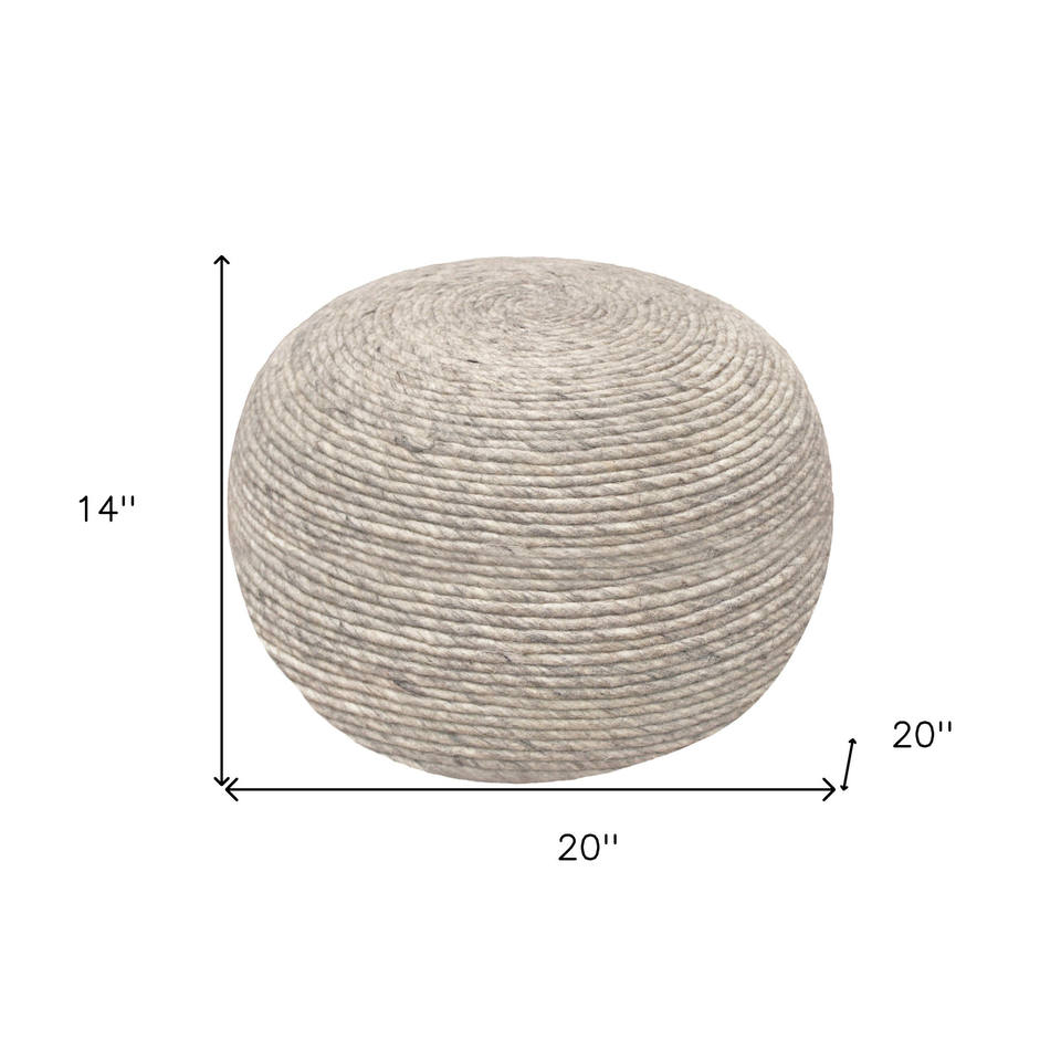 HMS 20\" Gray Wool Round Ribbed Pouf Ottoman Extendable Footrest with Storage for Bedroom Living Room Made MDF Leather Plastic