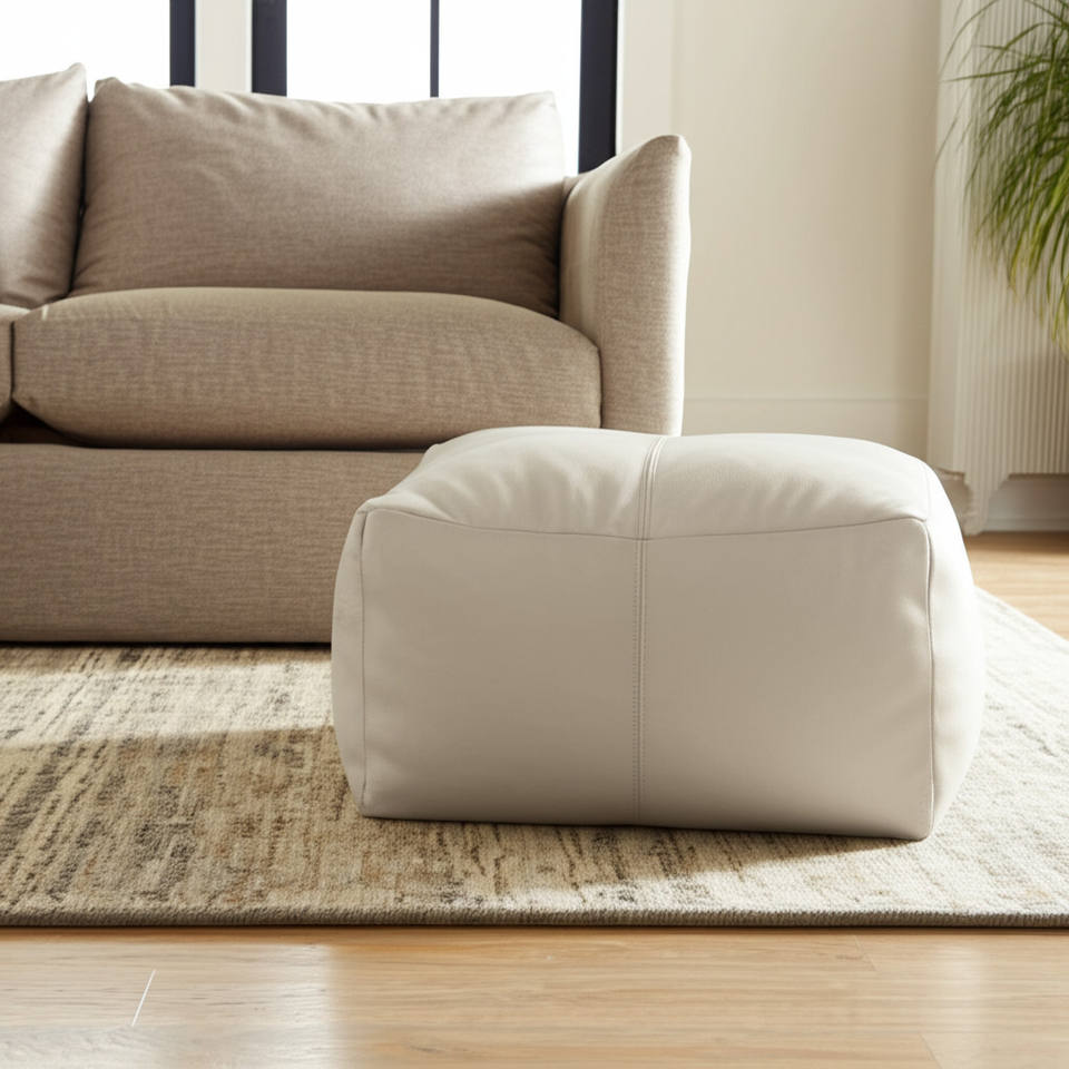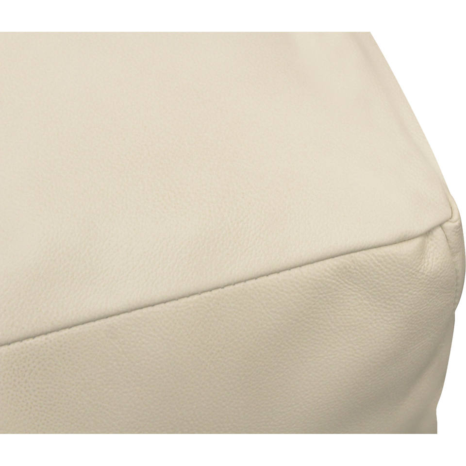 HMS 22\" Ivory Leather Pouf Ottoman Modern Contemporary Home Furniture for Bedroom Living Room Home Office Wooden Stool Bench