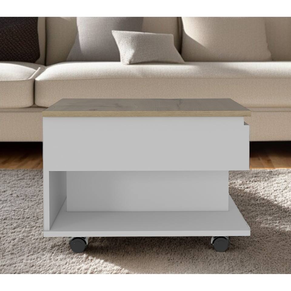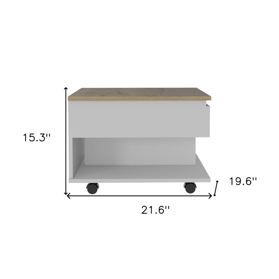 HMS 22\" White and Light Oak Rectangular Coffee Table with Drawer Manufactured Wood