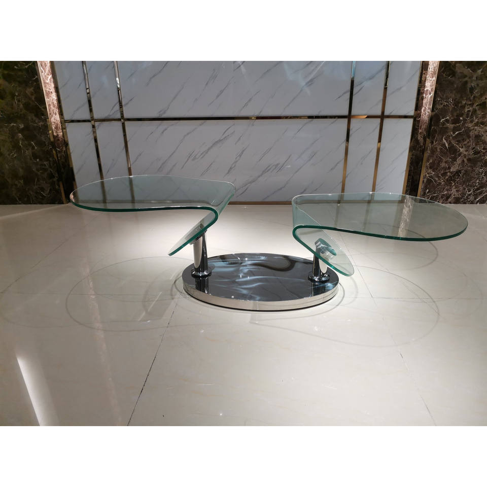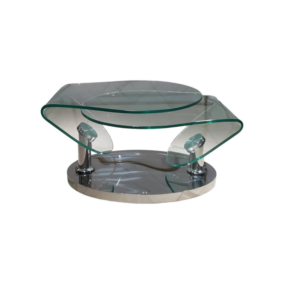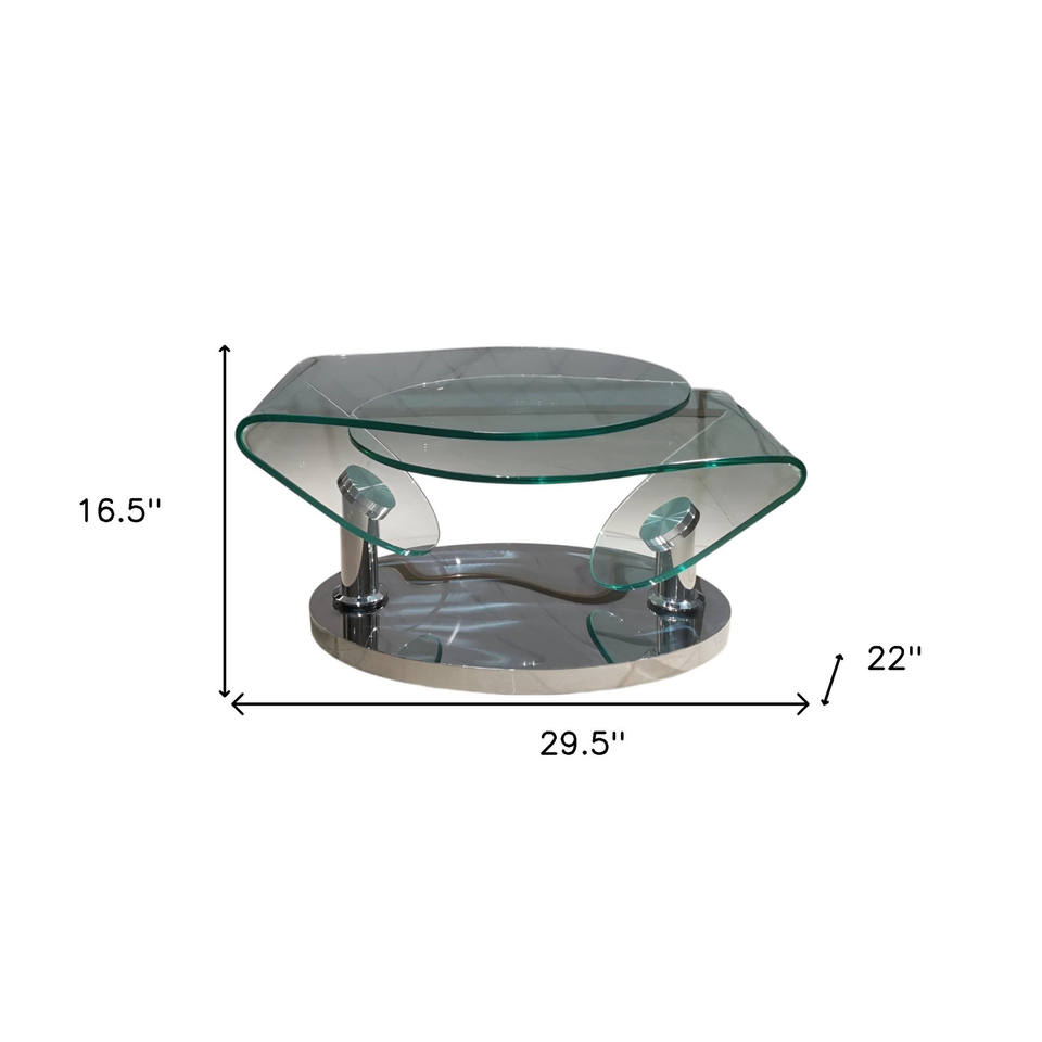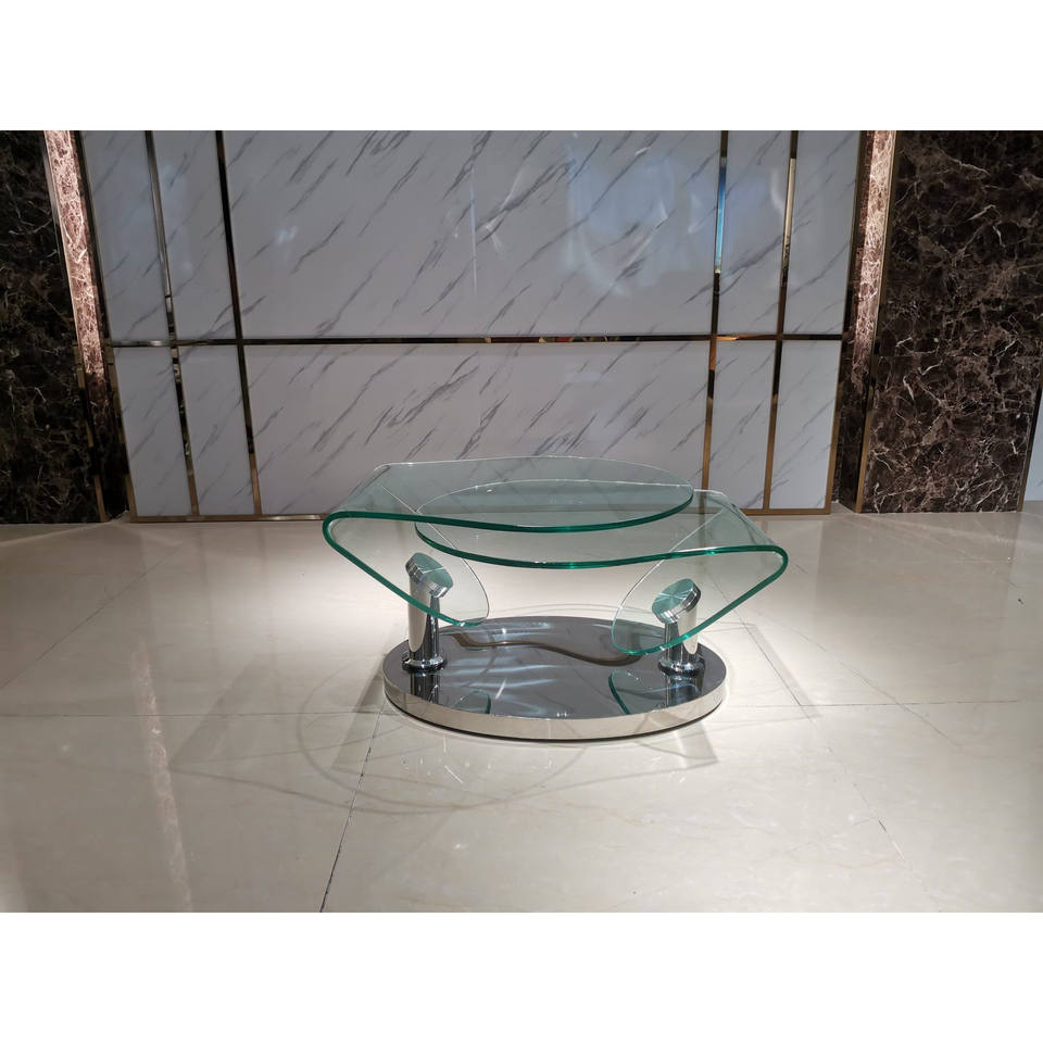 HMS 30\" Clear and Silver Glass Metal Oval Abstract Coffee Table
